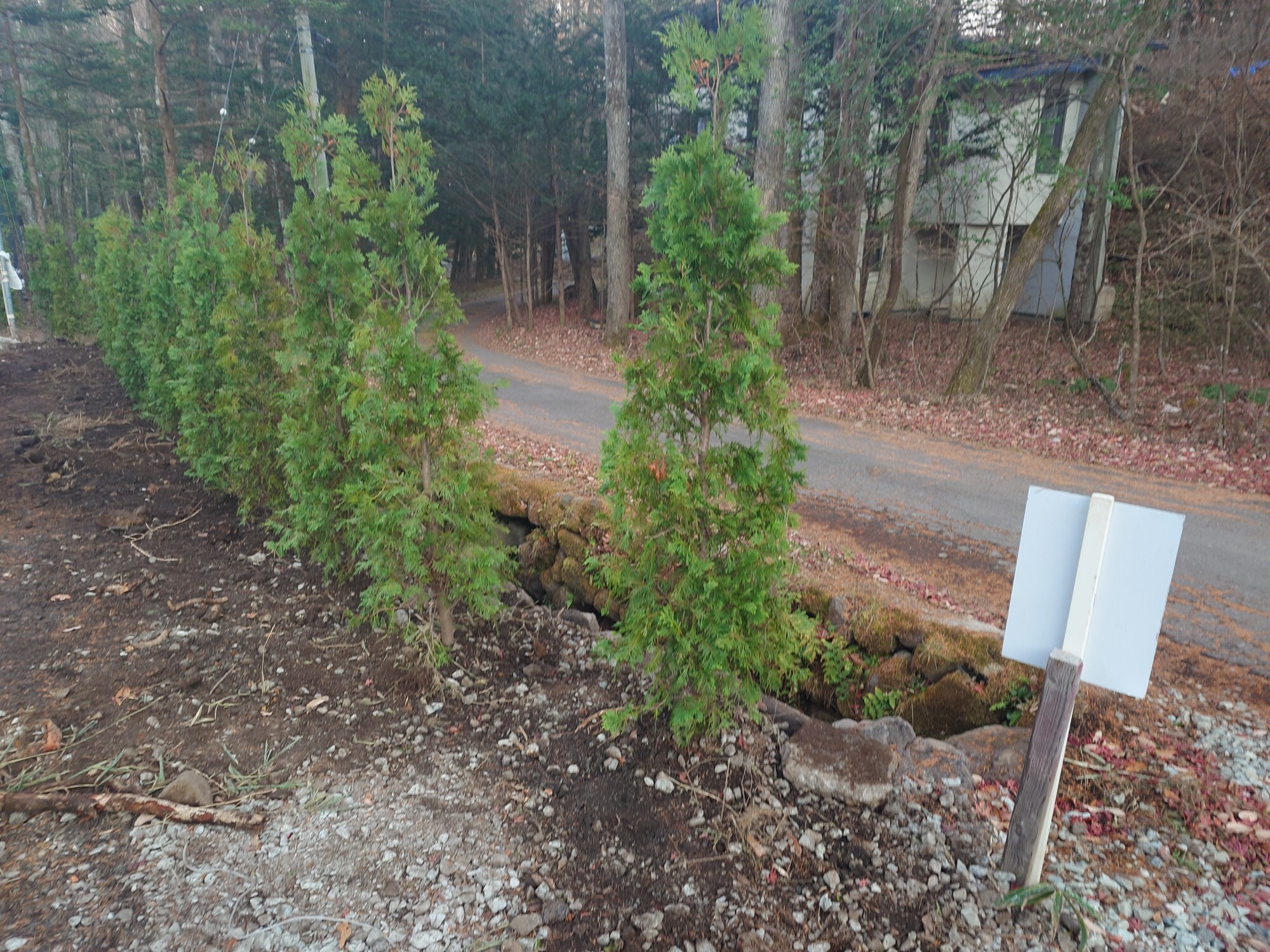 ドウダン、ニオイヒバ、植え位置だし、マーキング。