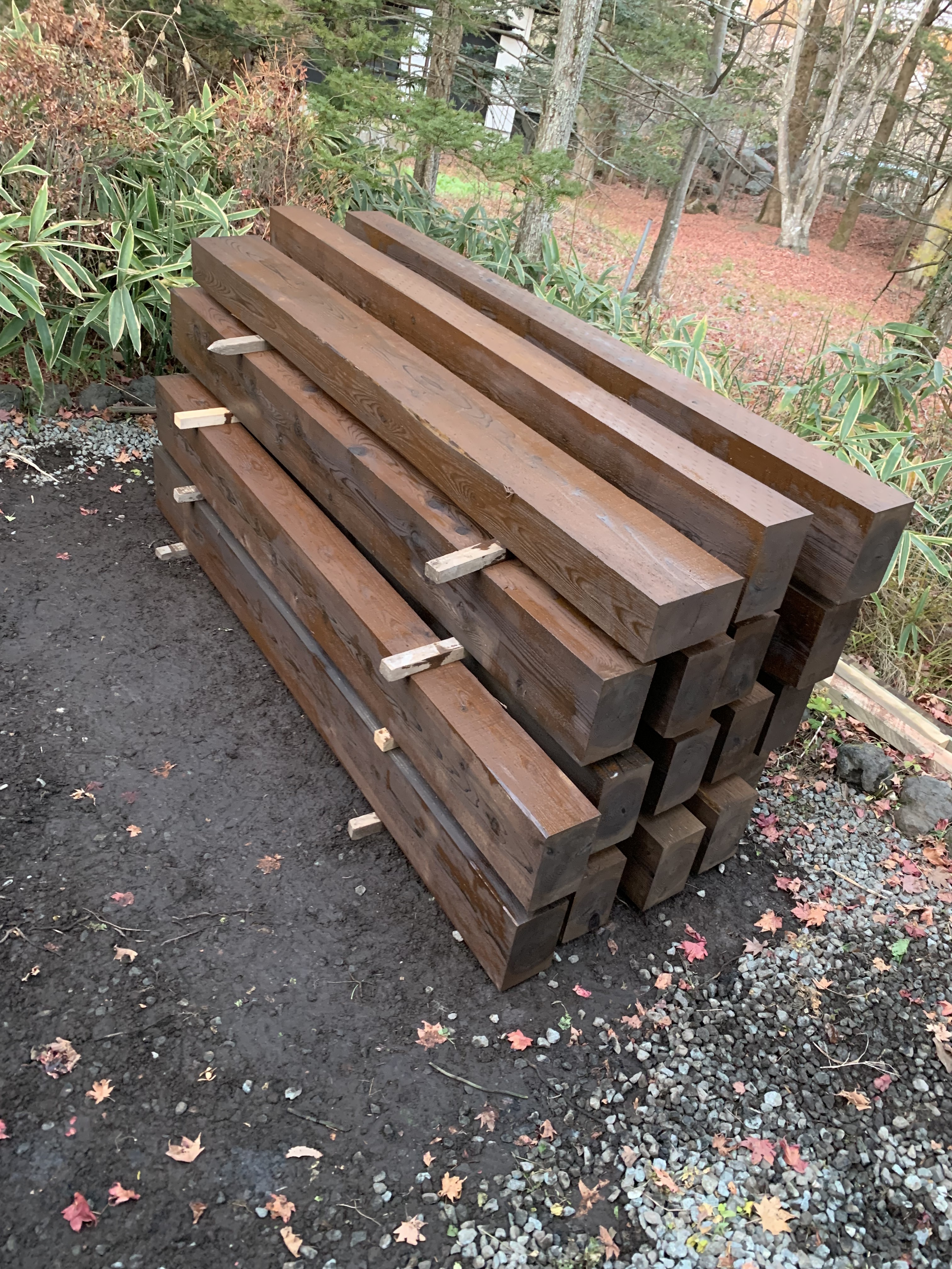 枕木ペンキ塗り(完了)