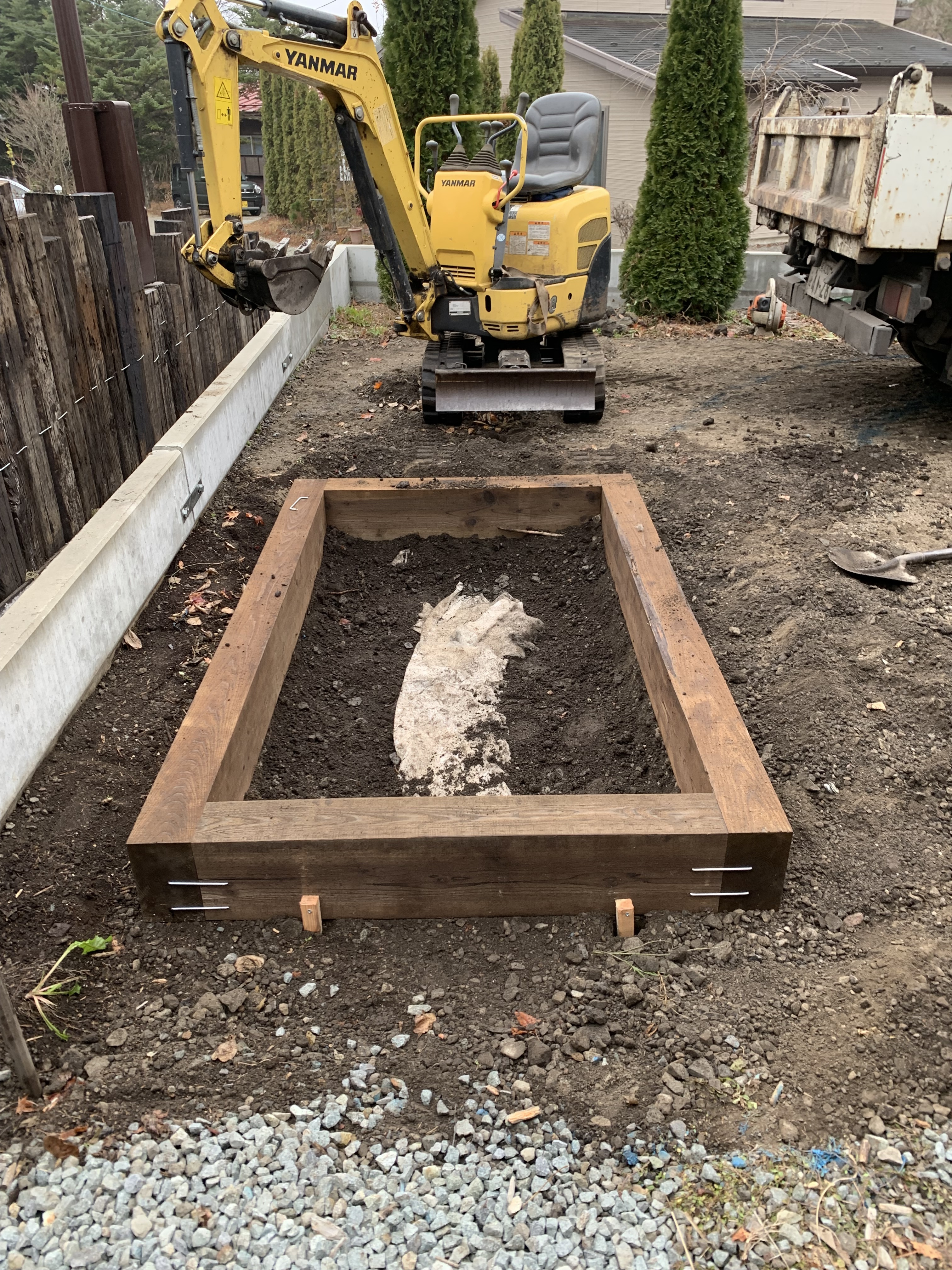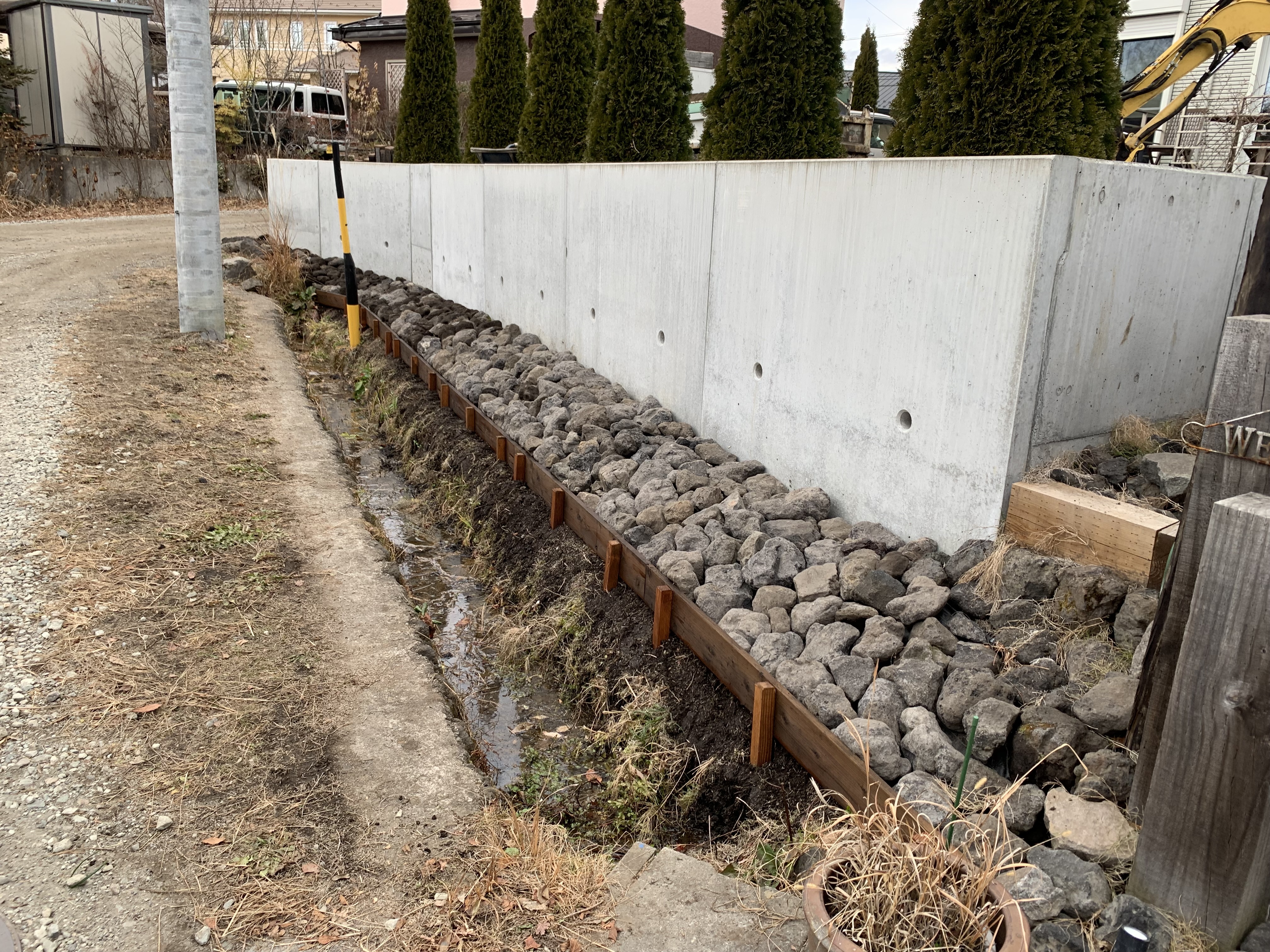 花壇設置(枕木2m2本、1m2本)、土の入れ替え