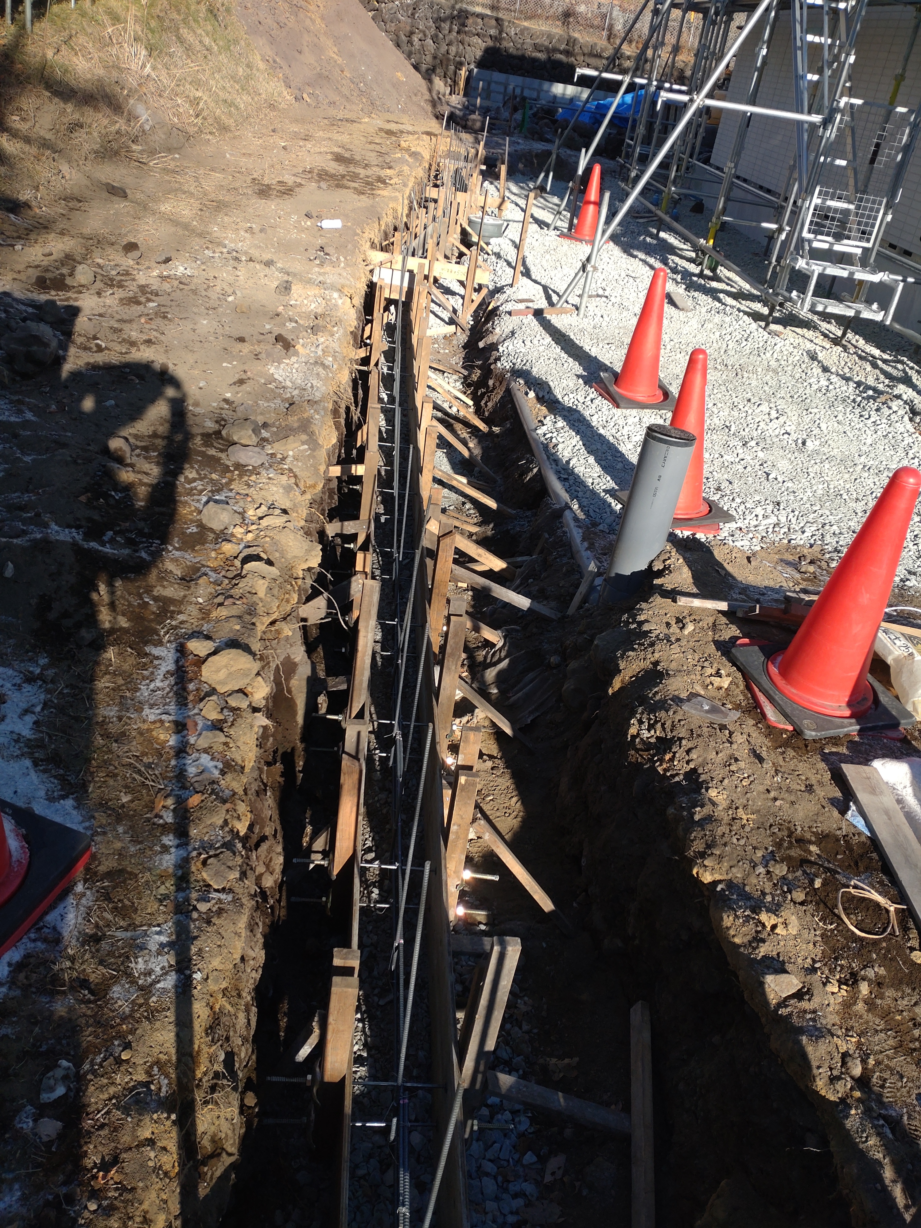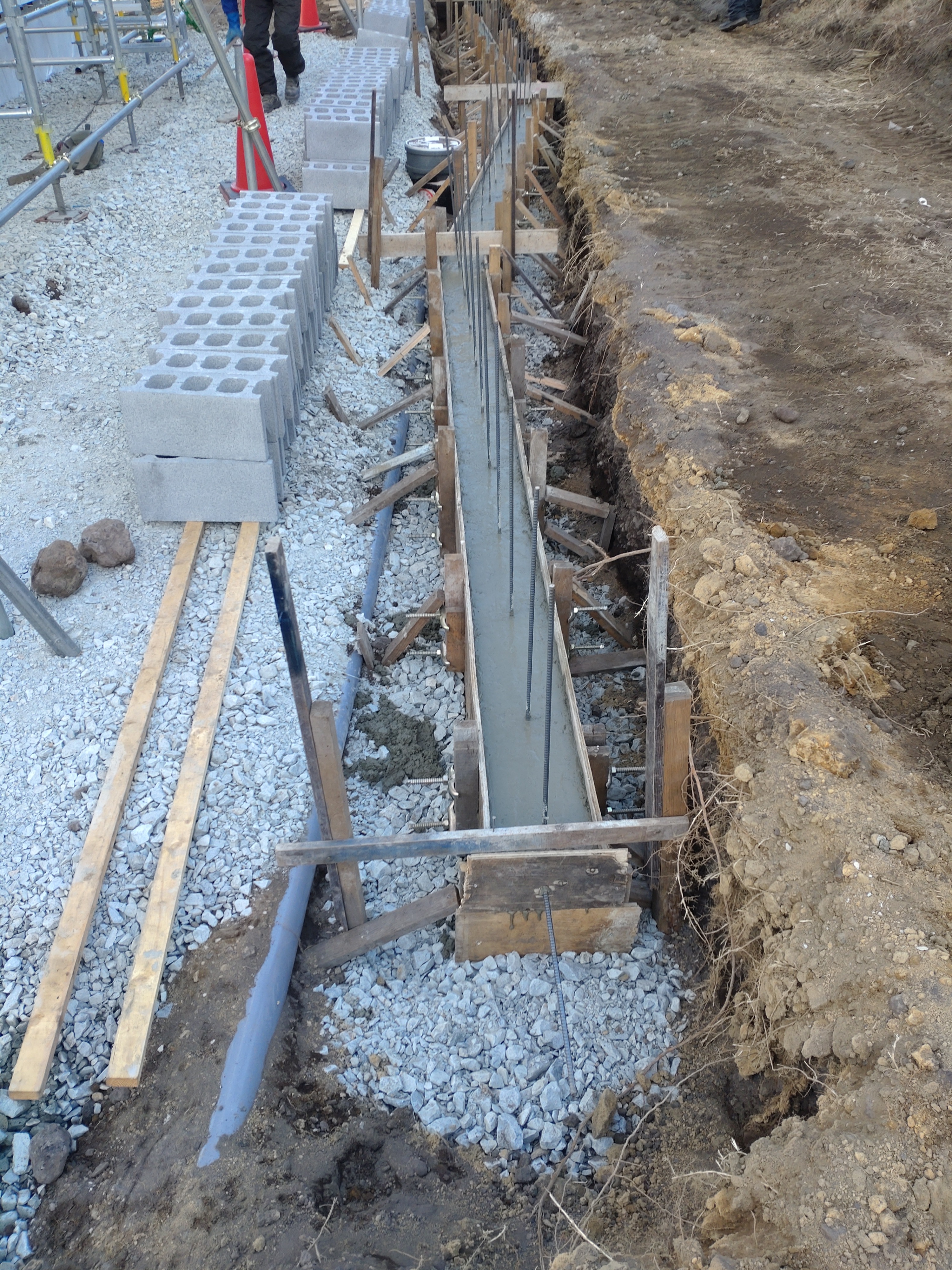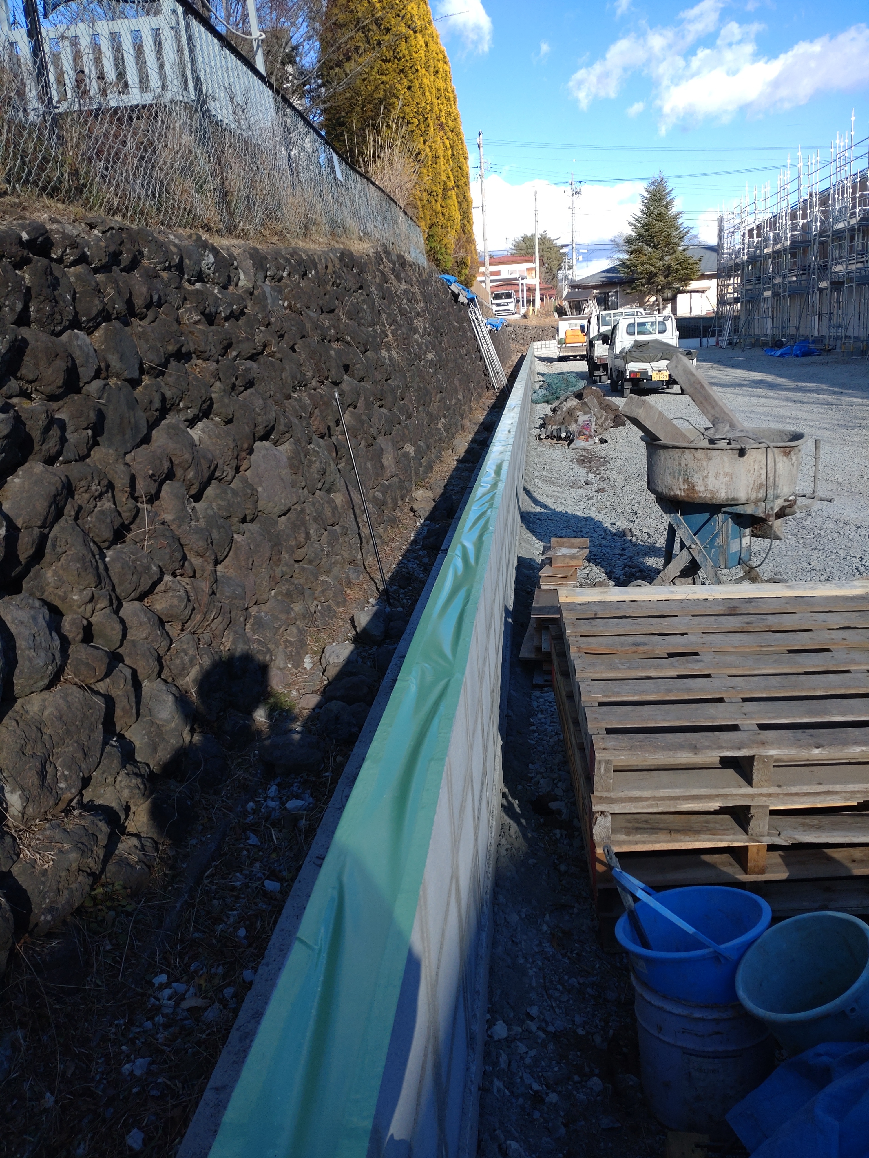 DHS様邸 yas 西側CB塀工 石垣上モルタル打設