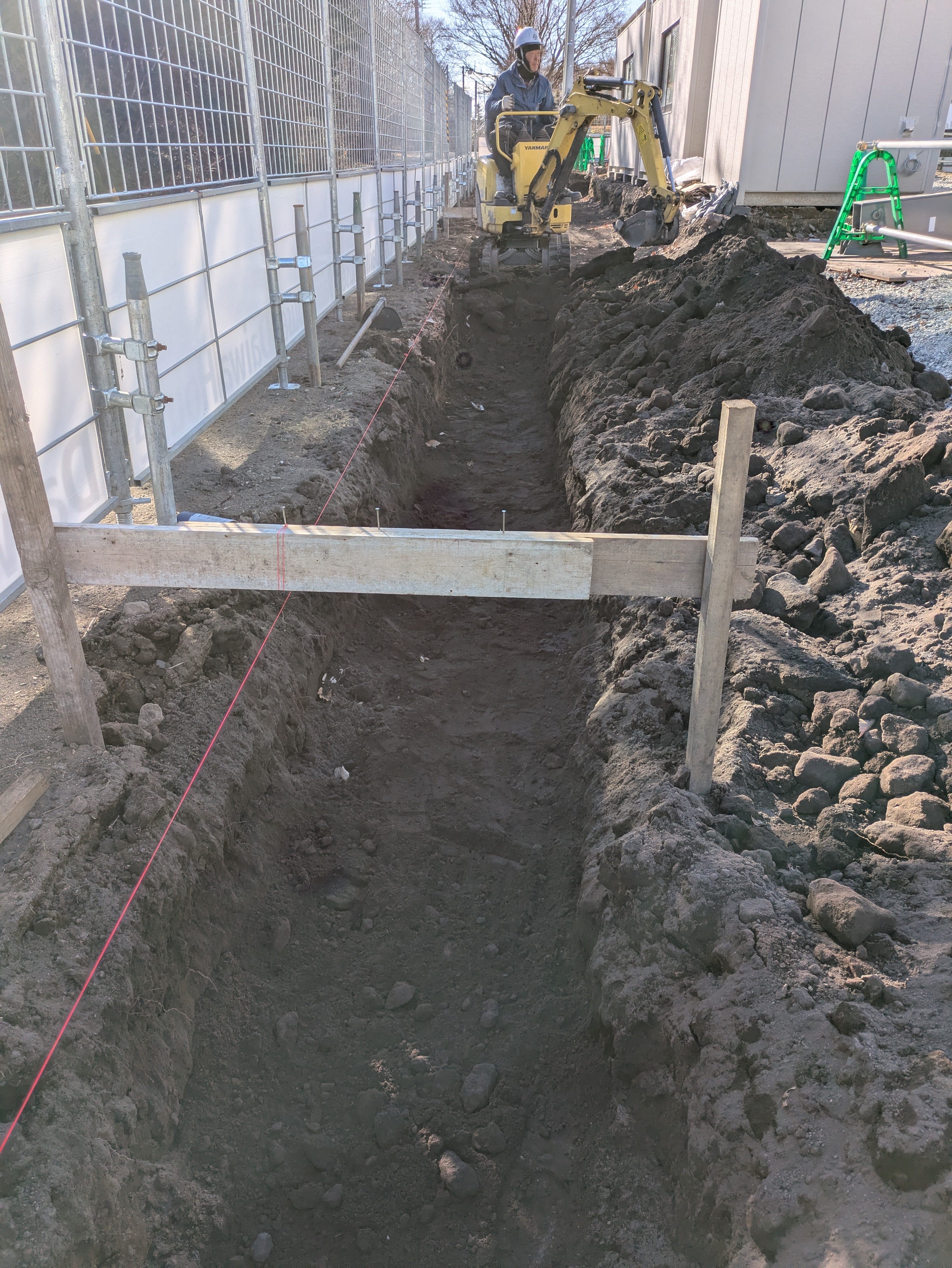 建物南側のブロック伏せ場所の床付けの手元