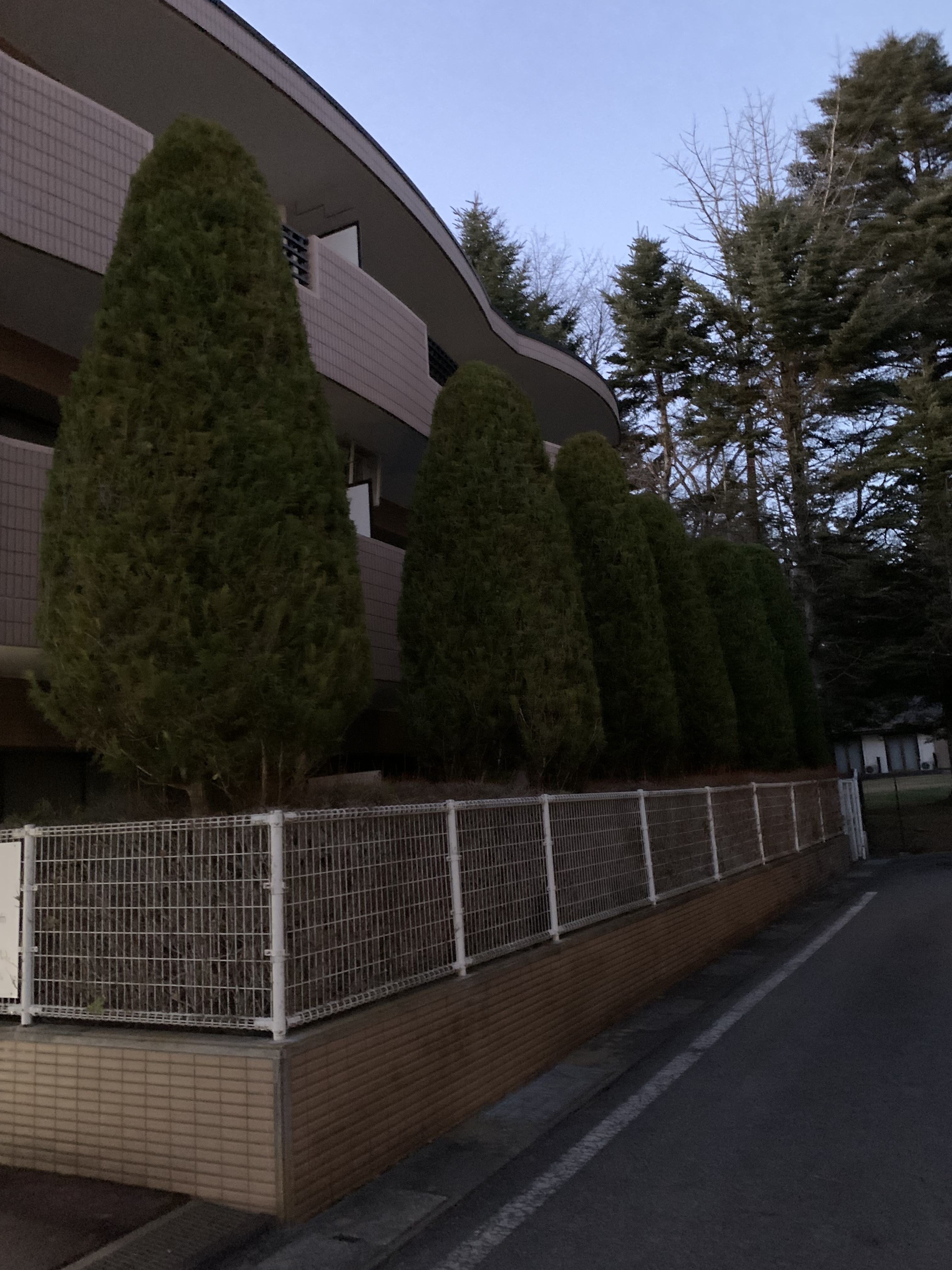 隣のアパート側のヒバ刈り込み