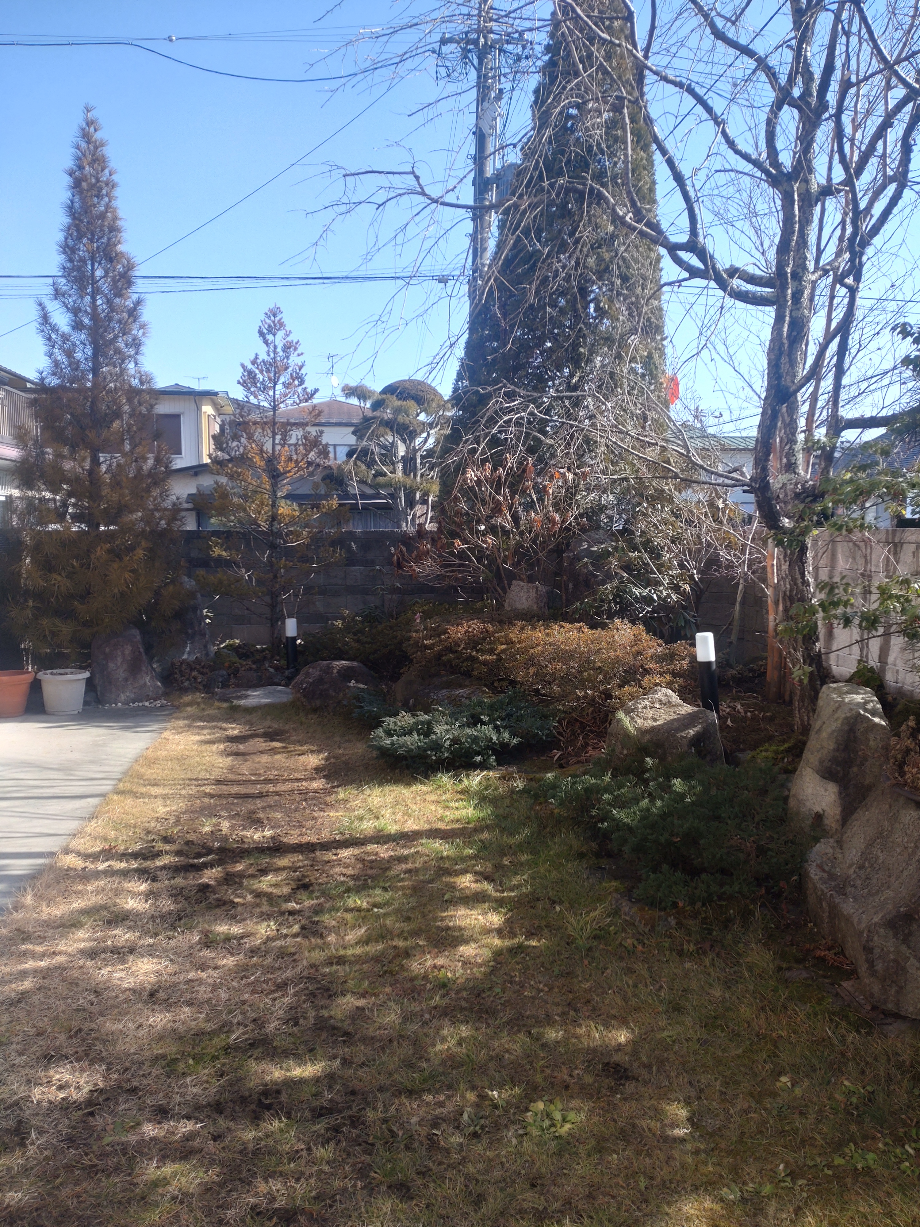 ヒバ家側刈り込み、コウヤマキ家側剪定