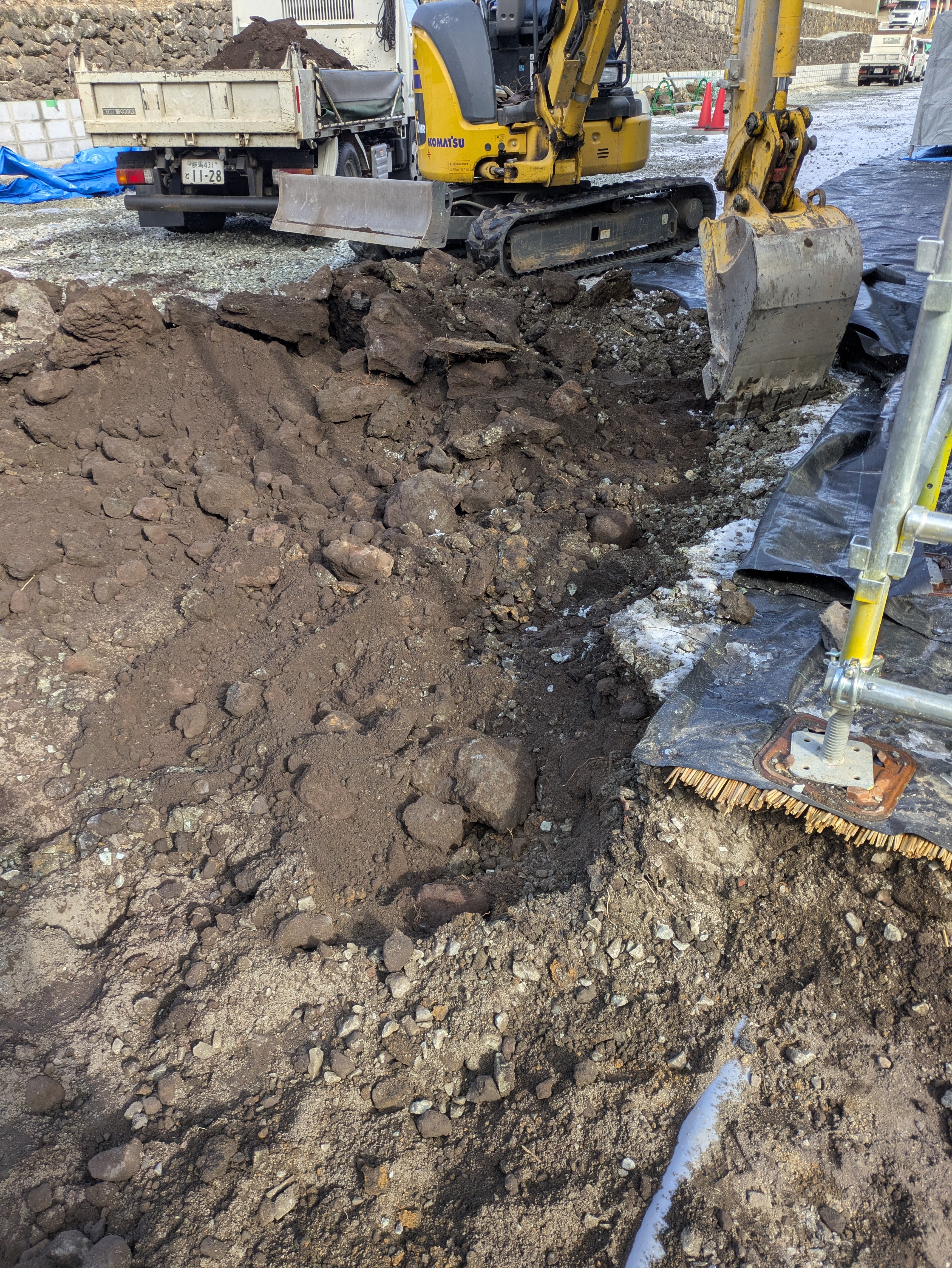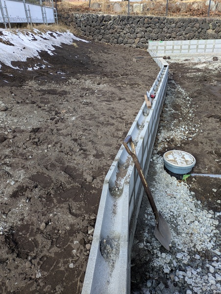 DHS様邸 MAS ブロック裏埋め戻し 石積み上のフェンス解体