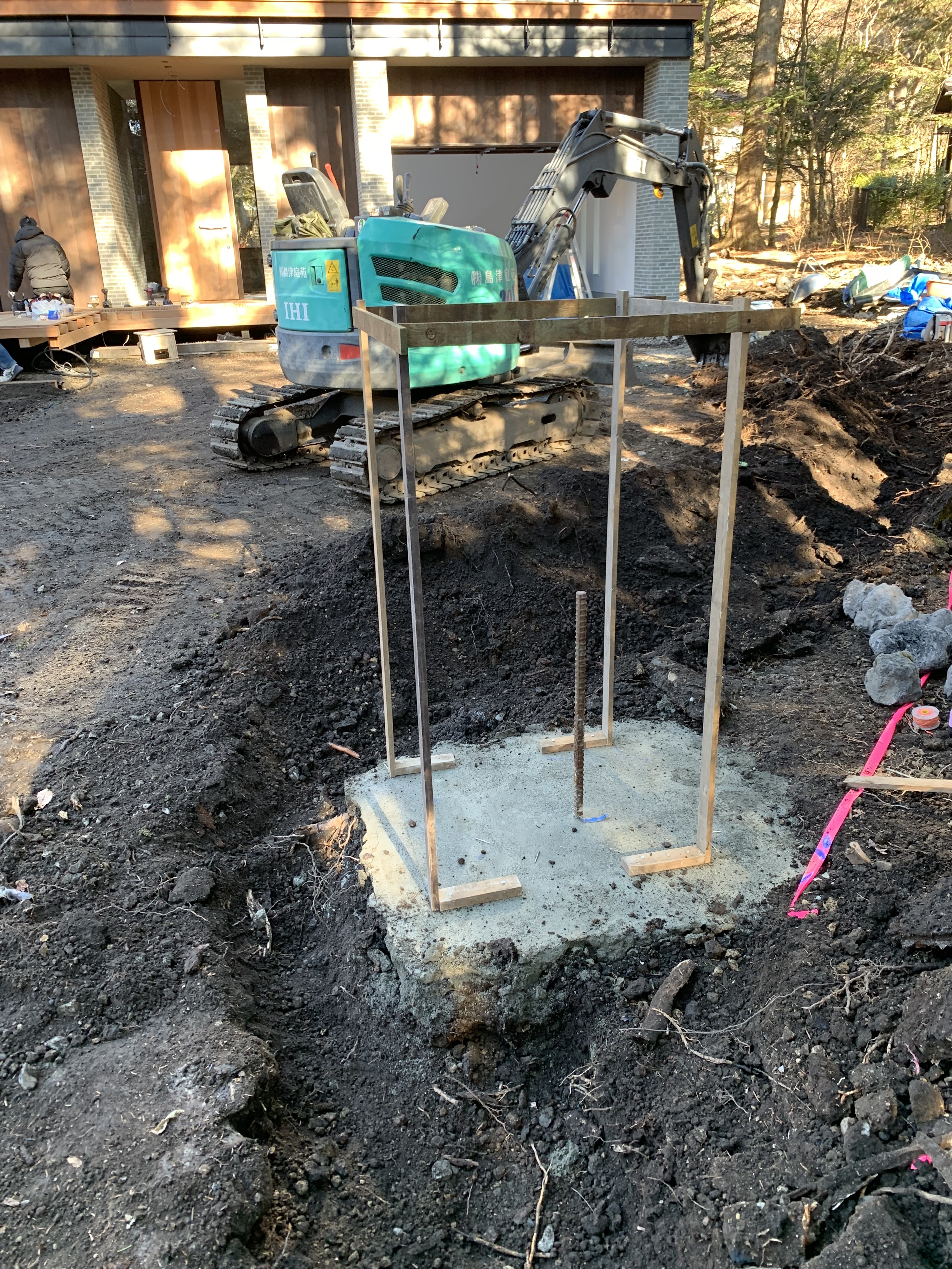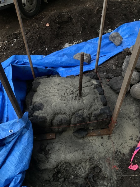 門柱石積み(7段中1段完了)、モルタル打設、洗い