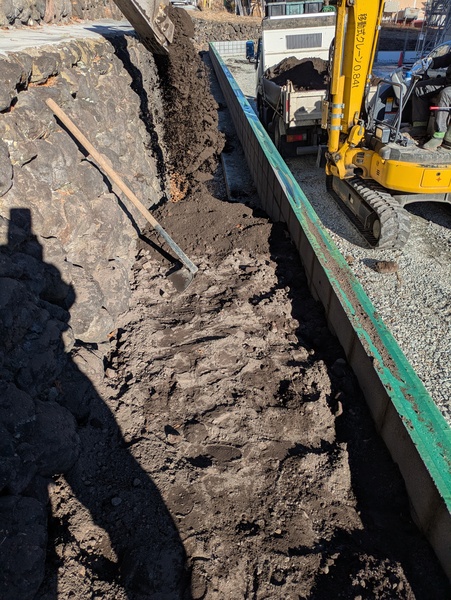 建物南側のブロックベースの床付付け