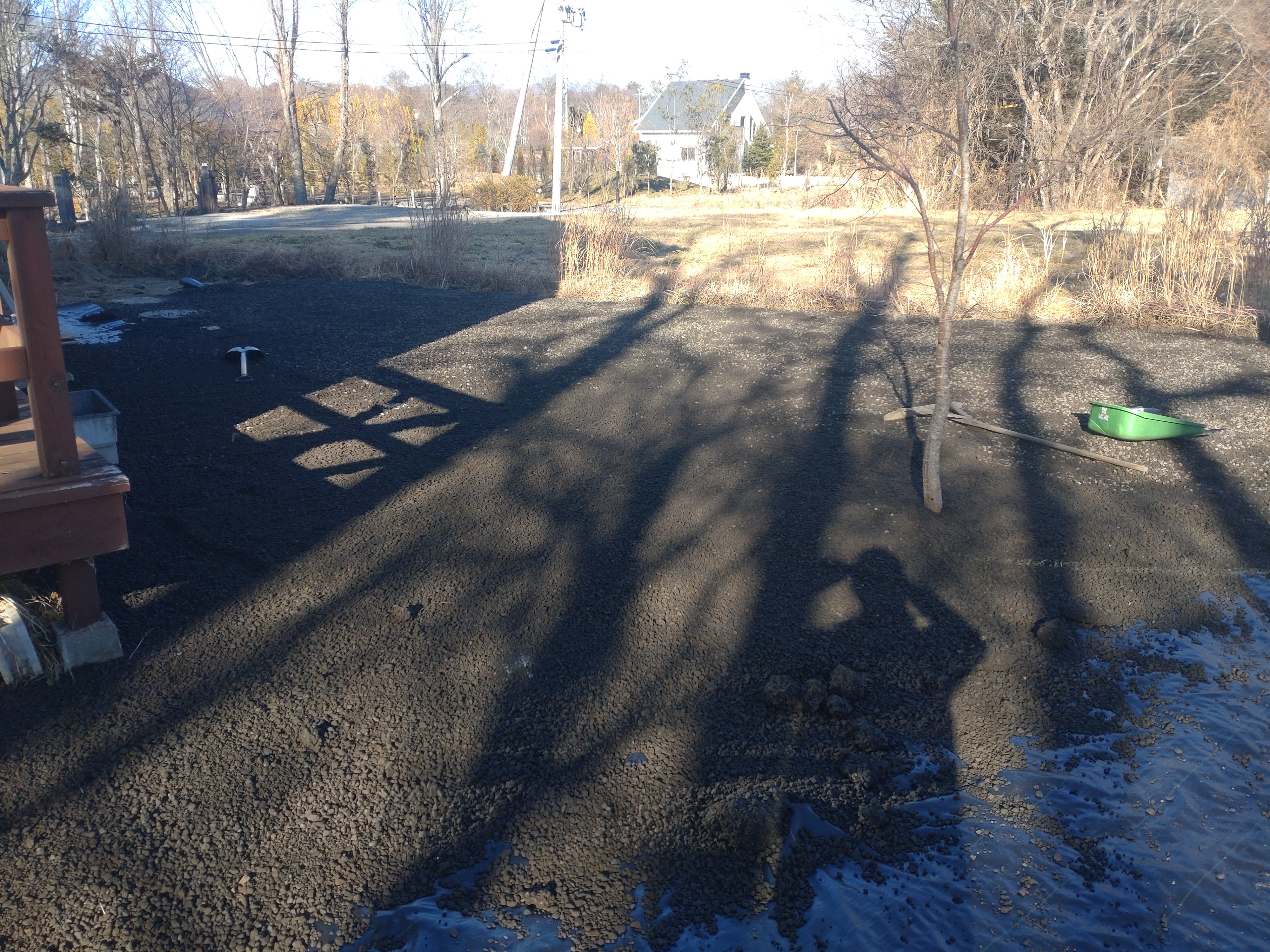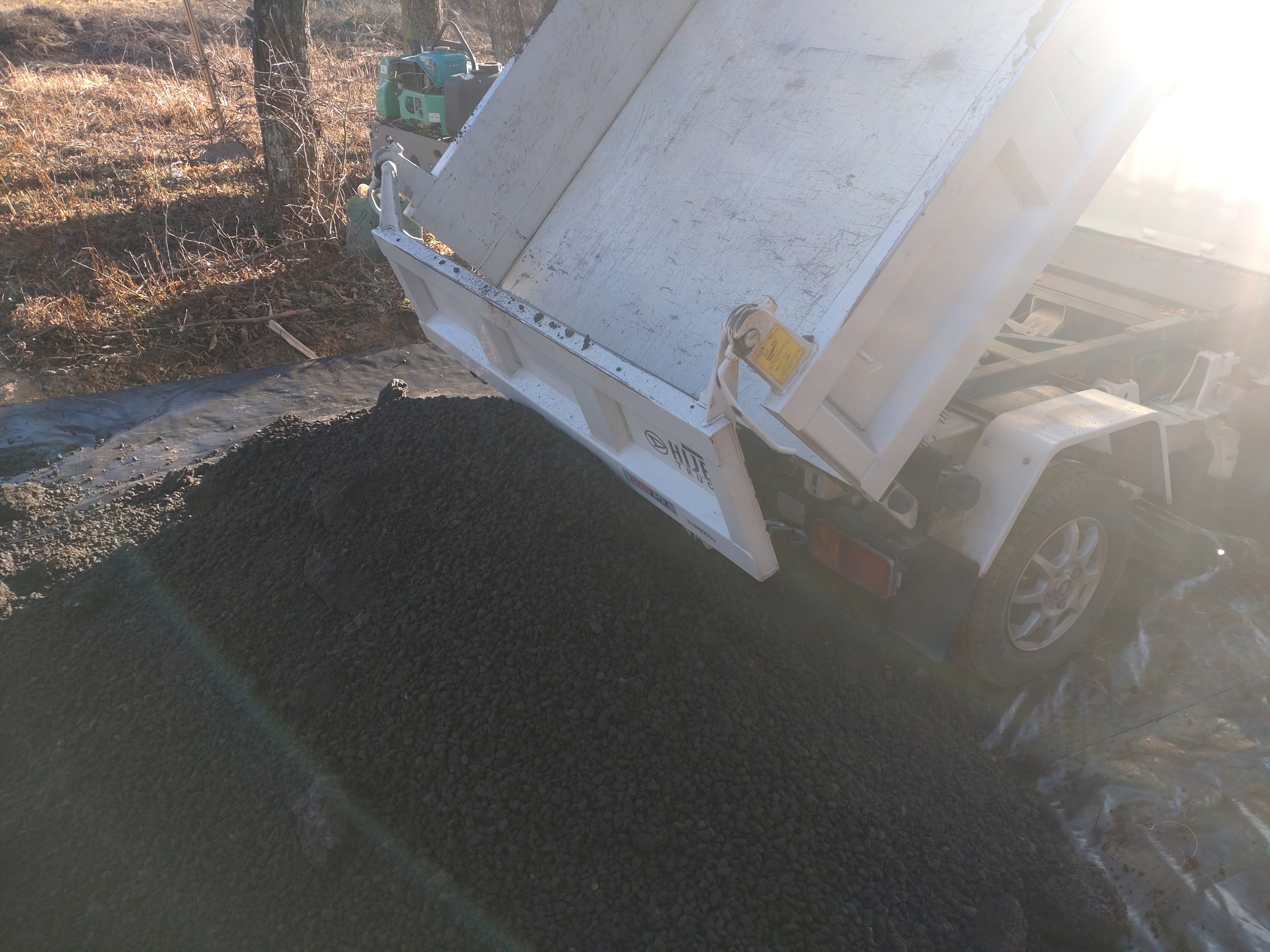 RIWさんの軽トラダンプにビリを積み小運搬しビリ敷き均し(本日約220平米)
