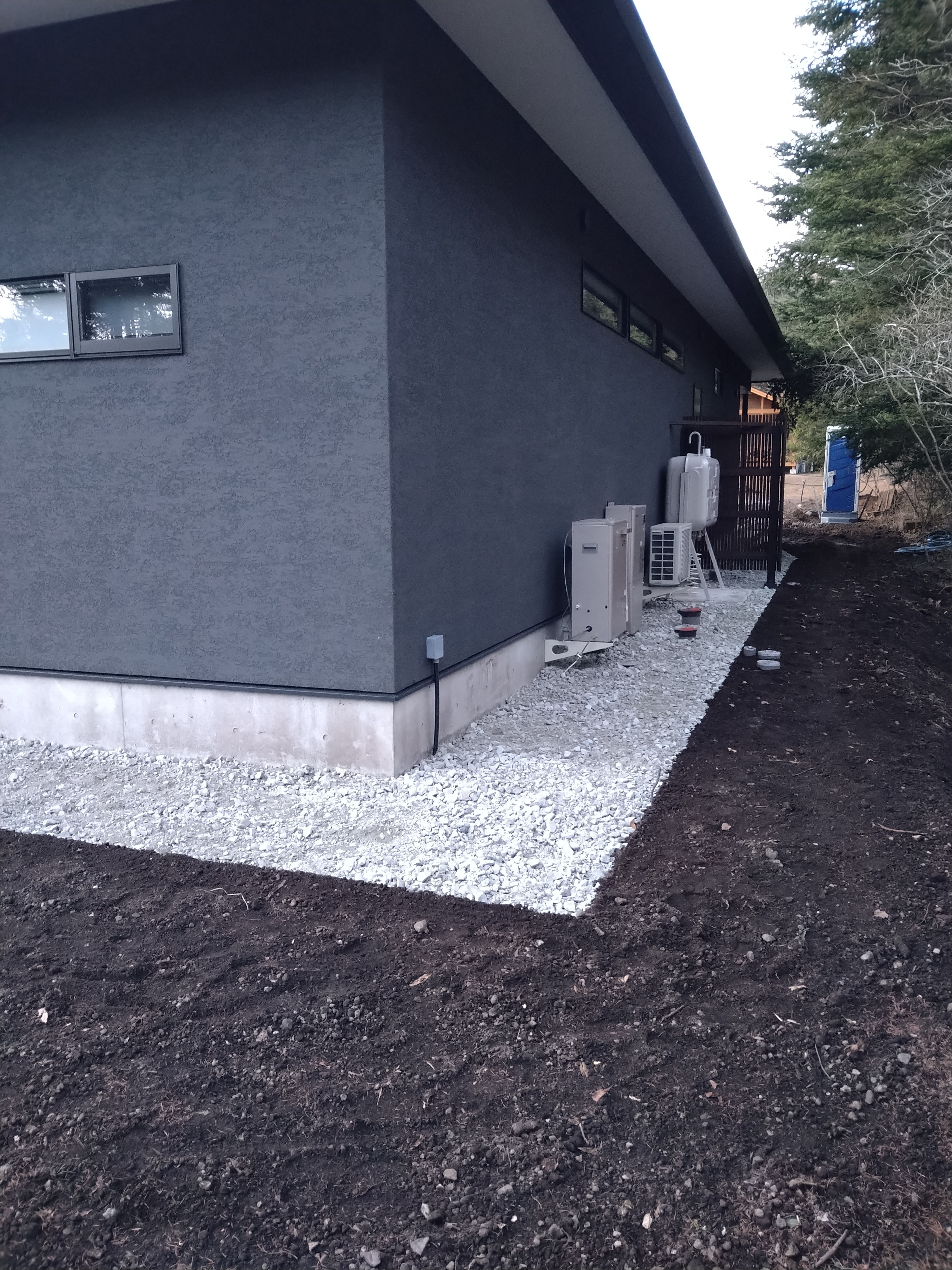 残土を搬出し、帰り荷で砕石を搬入し、雨落ち工をしました!この現場の雨落ち材料は、C40仕様です!