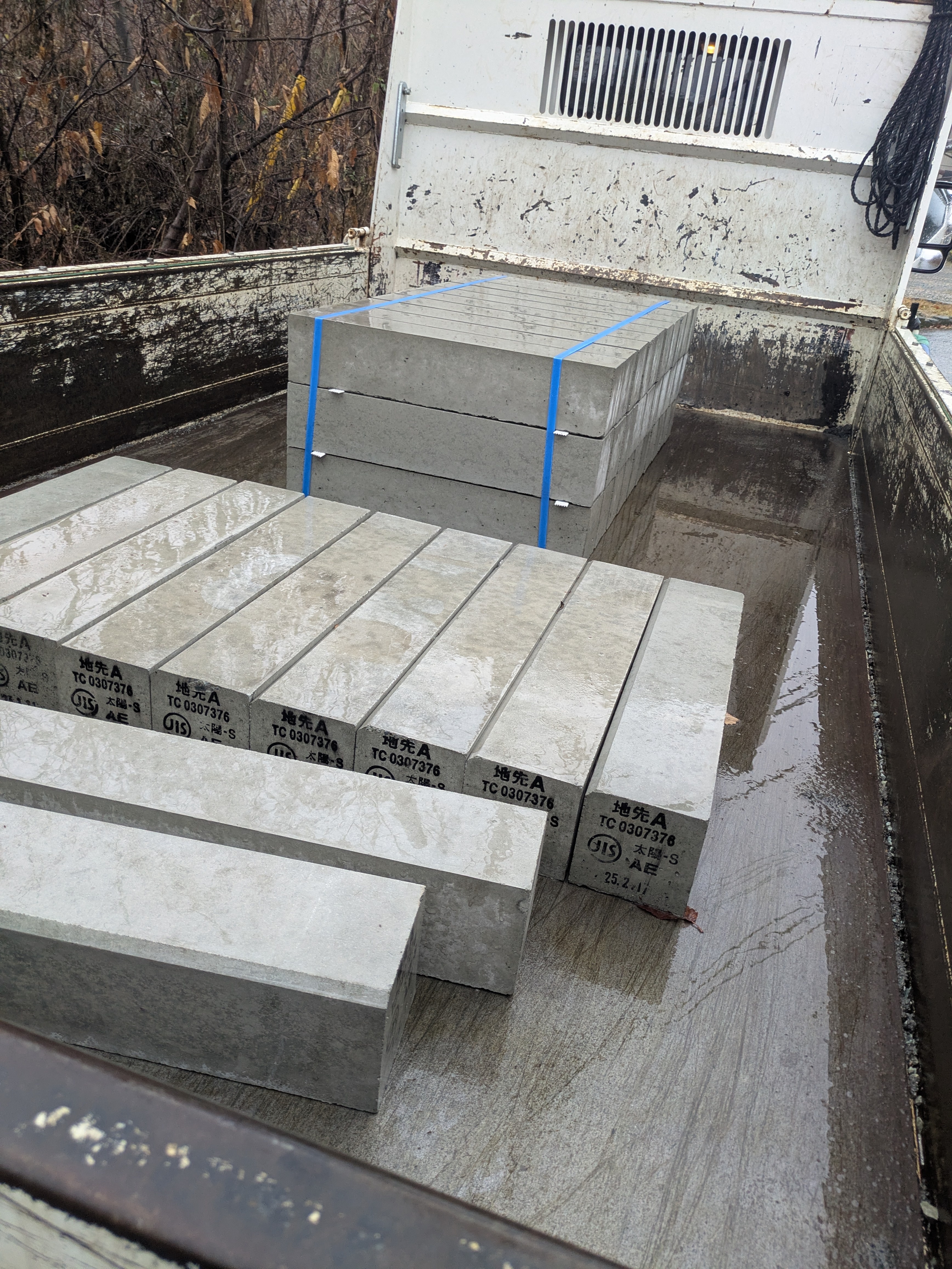6時半出発で、渋川のブロック屋に地先ブロックを積みに行きました。