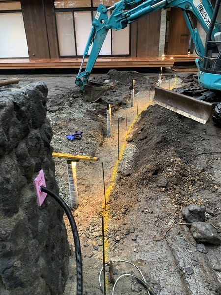 縁石(掘削、砕石入れ、位置出し、高さ出し、左岸完了)