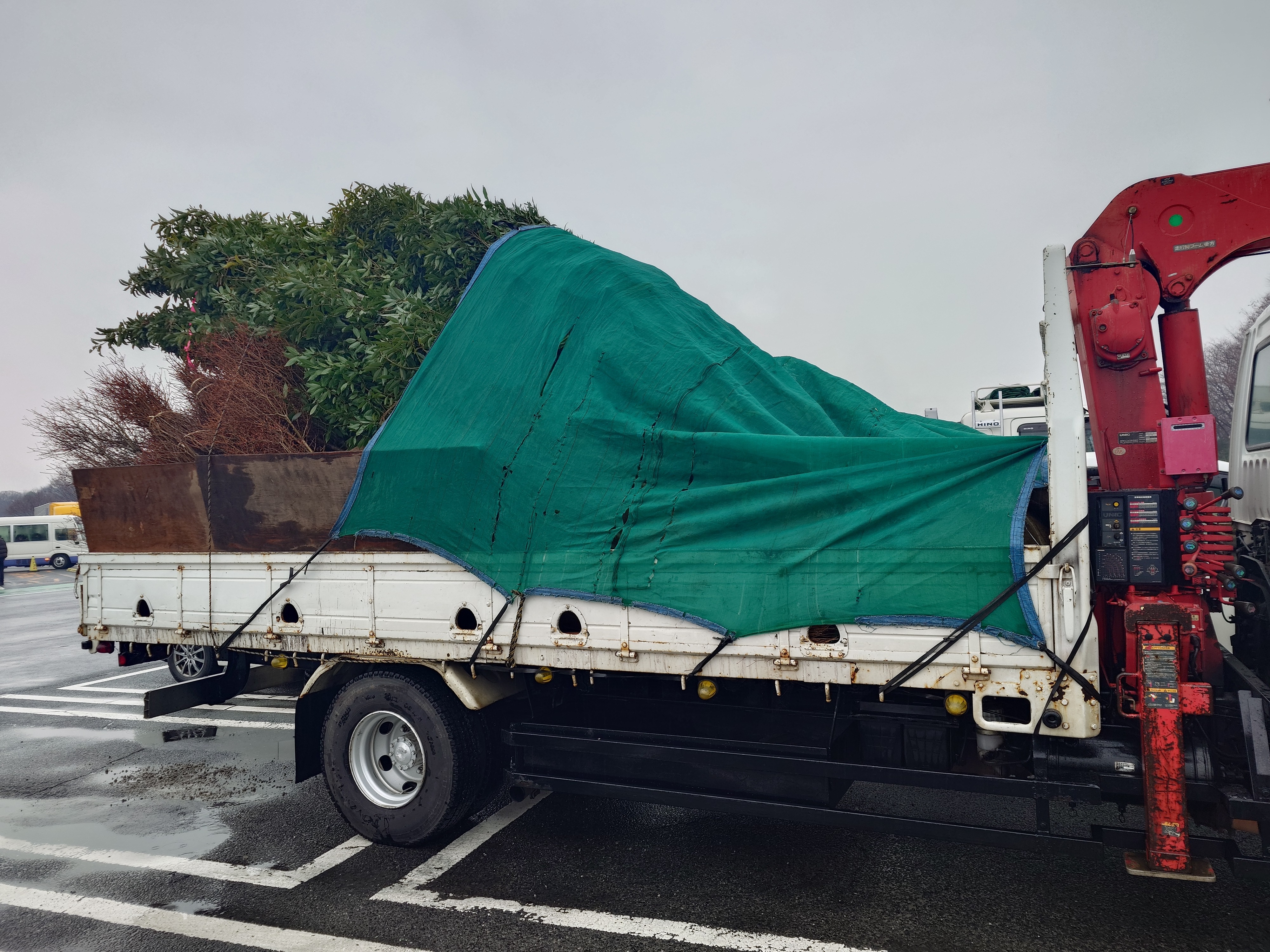 リース屋さんに行き4tユニックを借りて、埼玉の植木屋さんに植木をもちに行く。12時到着、積込。ドウダン110本、シラカシ8本、マサキ38本、ボックスウッド43本、13時出発、15時50分CTG様邸、マサキ、ボックスウッド荷下ろし、16時20分、CQ6様邸・シラカシ、ドウダン荷下ろし、17時まで。リース屋さんにユニック返却、18時30分まで。