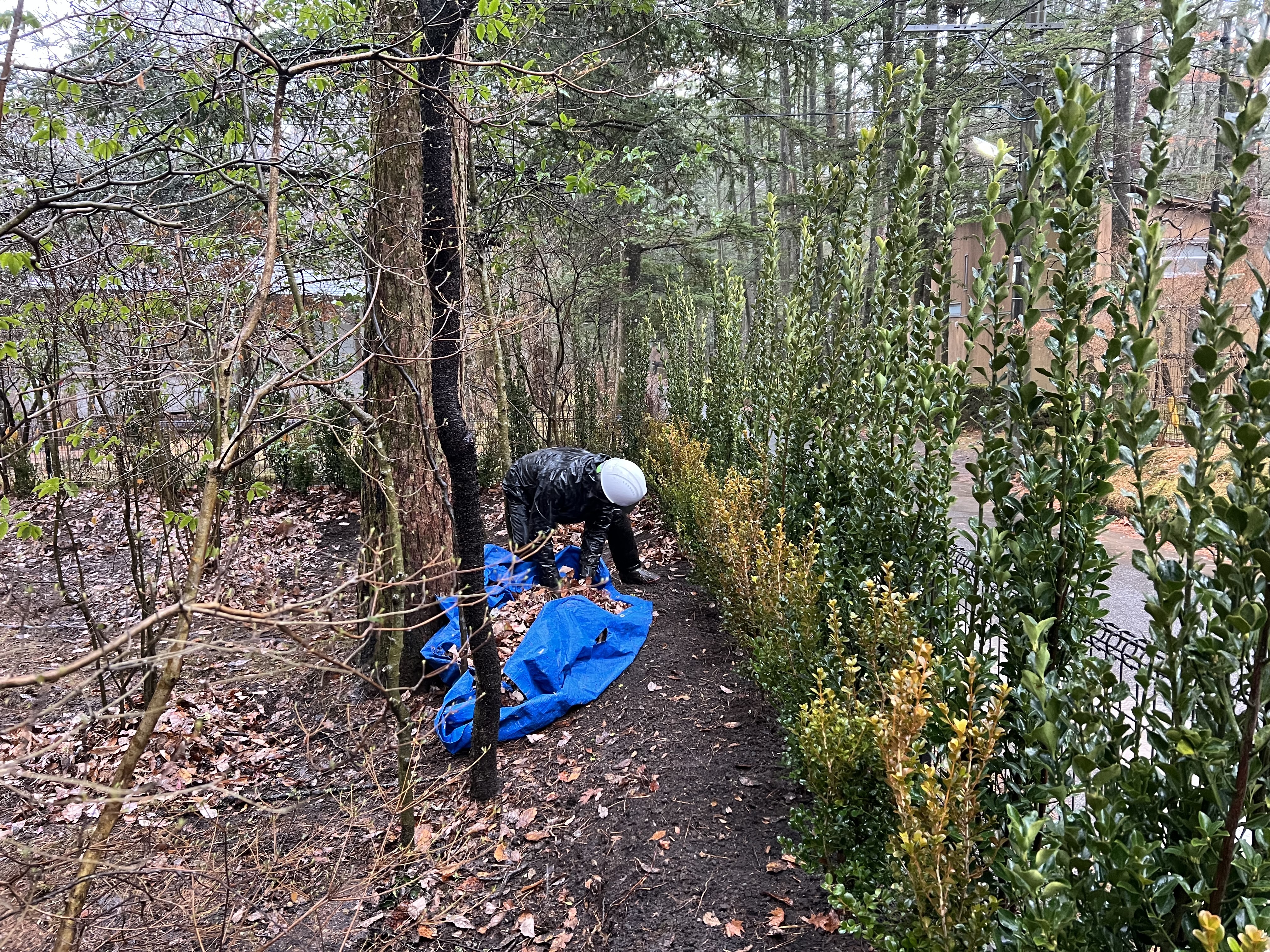 14:00-15:30 CTG様邸植栽水やり、落葉養生