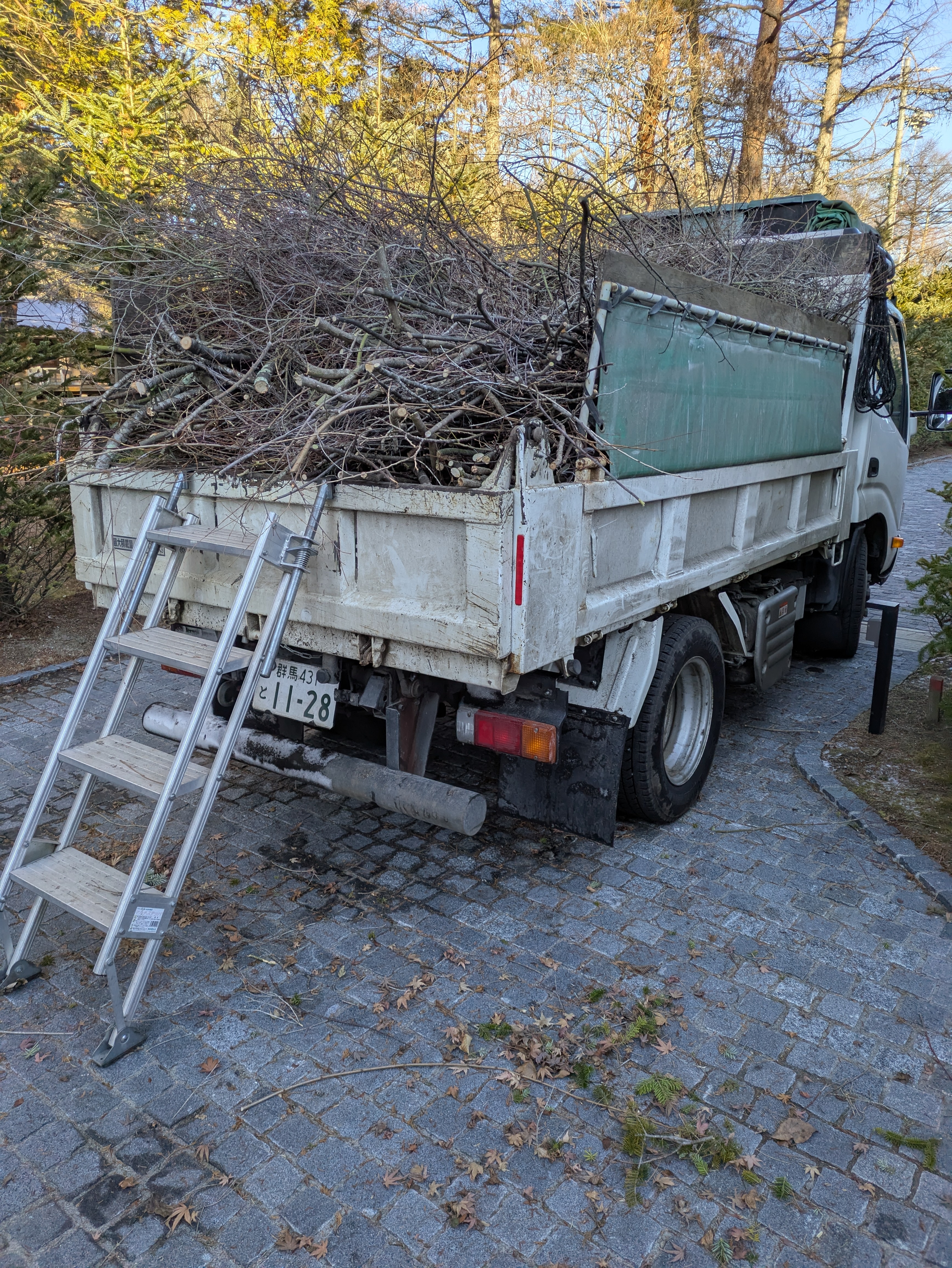 最終で、自社資材置き場へ枝ゴミを下ろして終了です。