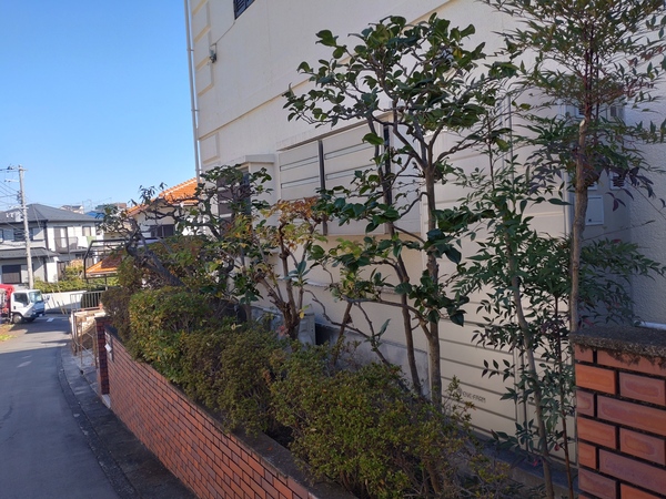 横浜の3軒中の1軒を草刈り、剪定、刈り込み、草取り、掃除作業