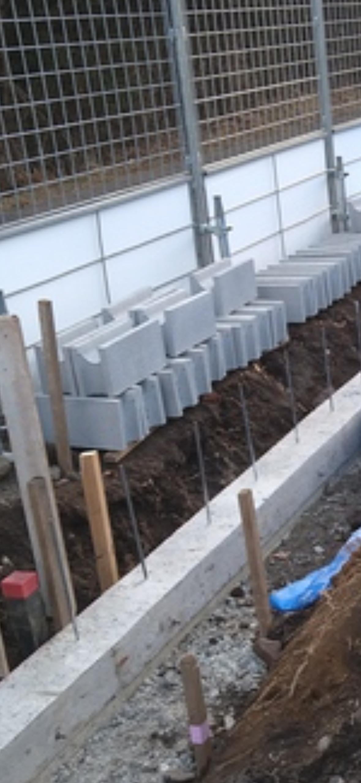 型枠の掃除。 パレットからブロックを基礎の後ろに配りました。
