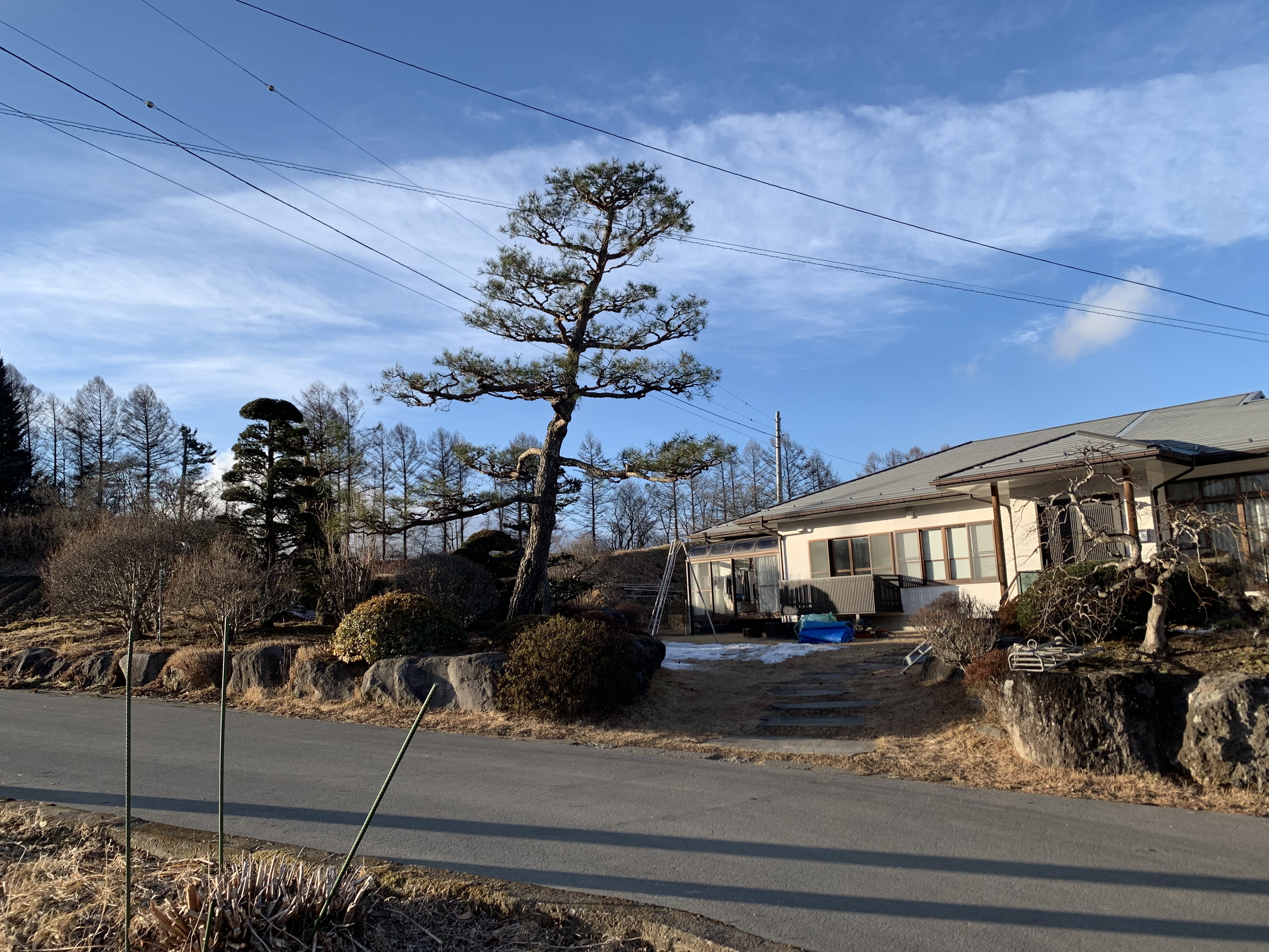 剪定(マツ3本、シダレモミジ1本)、刈り込み(コウヤマキ、イチイ、キャラ)、伐採(マツ1本)