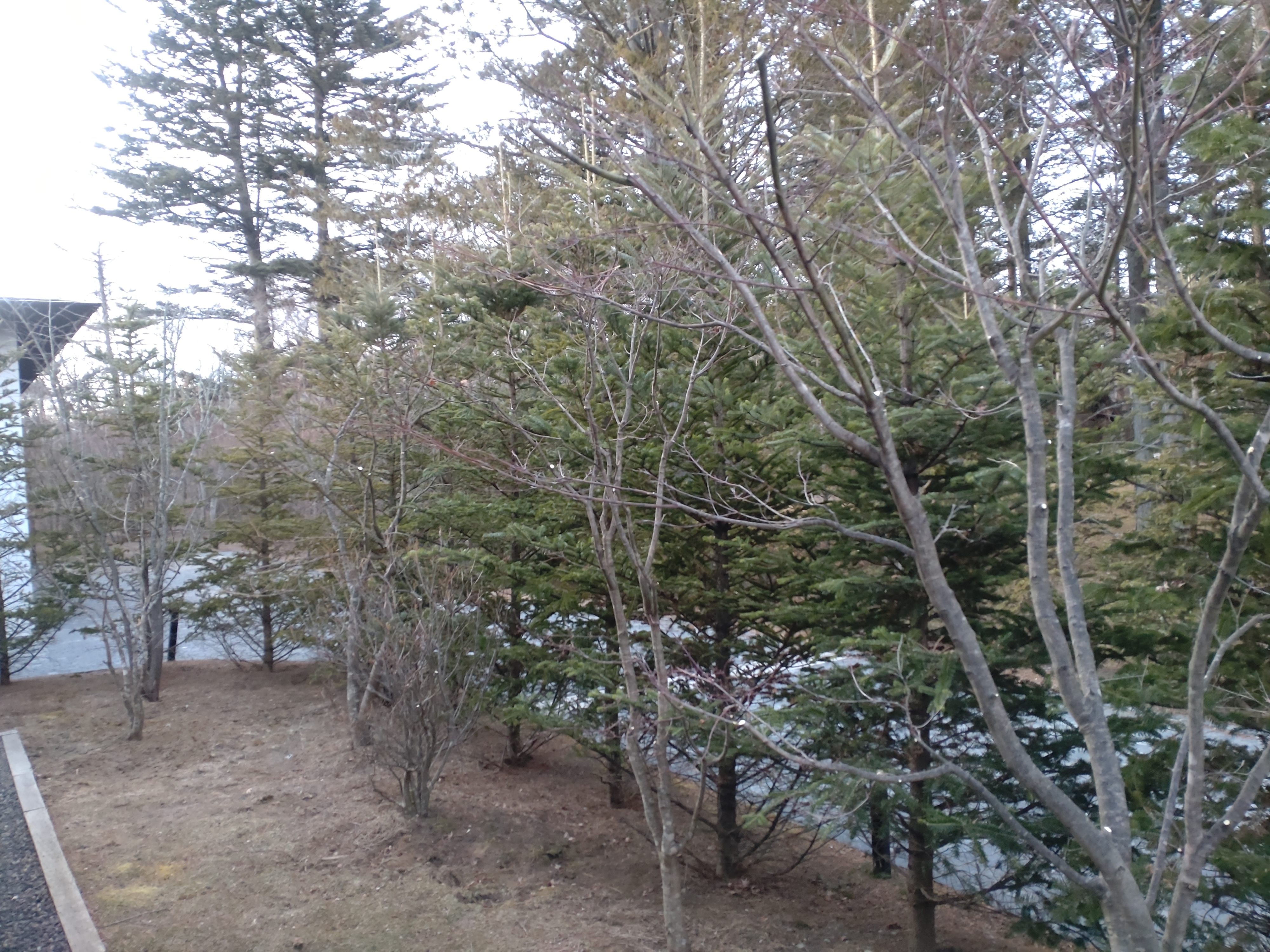駐車場の向かって右側から家裏の植木(モミジ、ツツジ、サクラ、