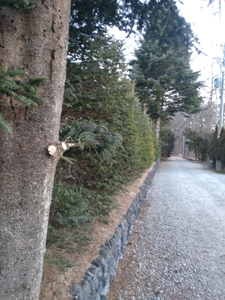 家の外周モミ越境、枯れ枝とり