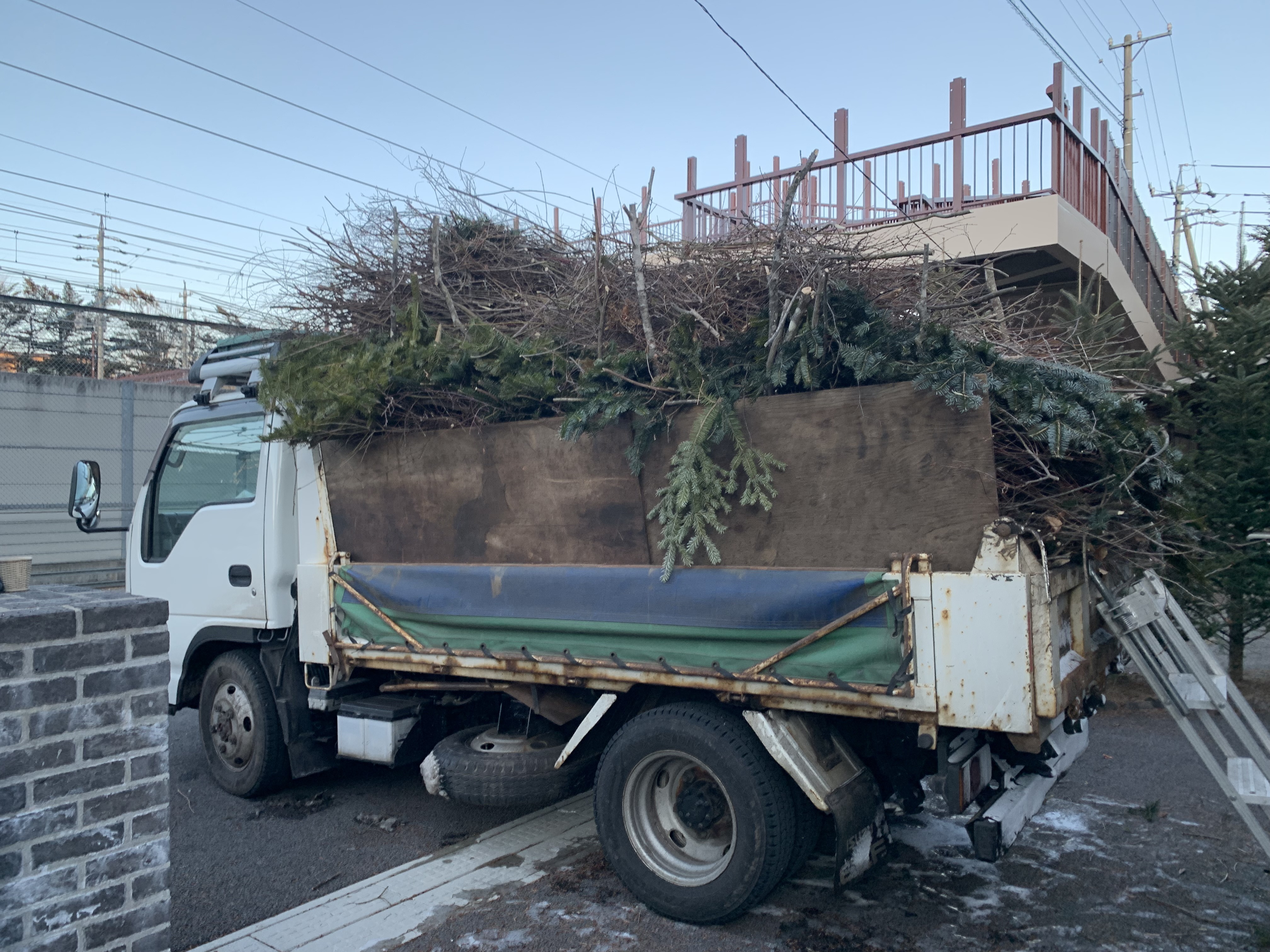 枝ゴミ1台処理場へ運搬し、資材を積み込み次の現場へ