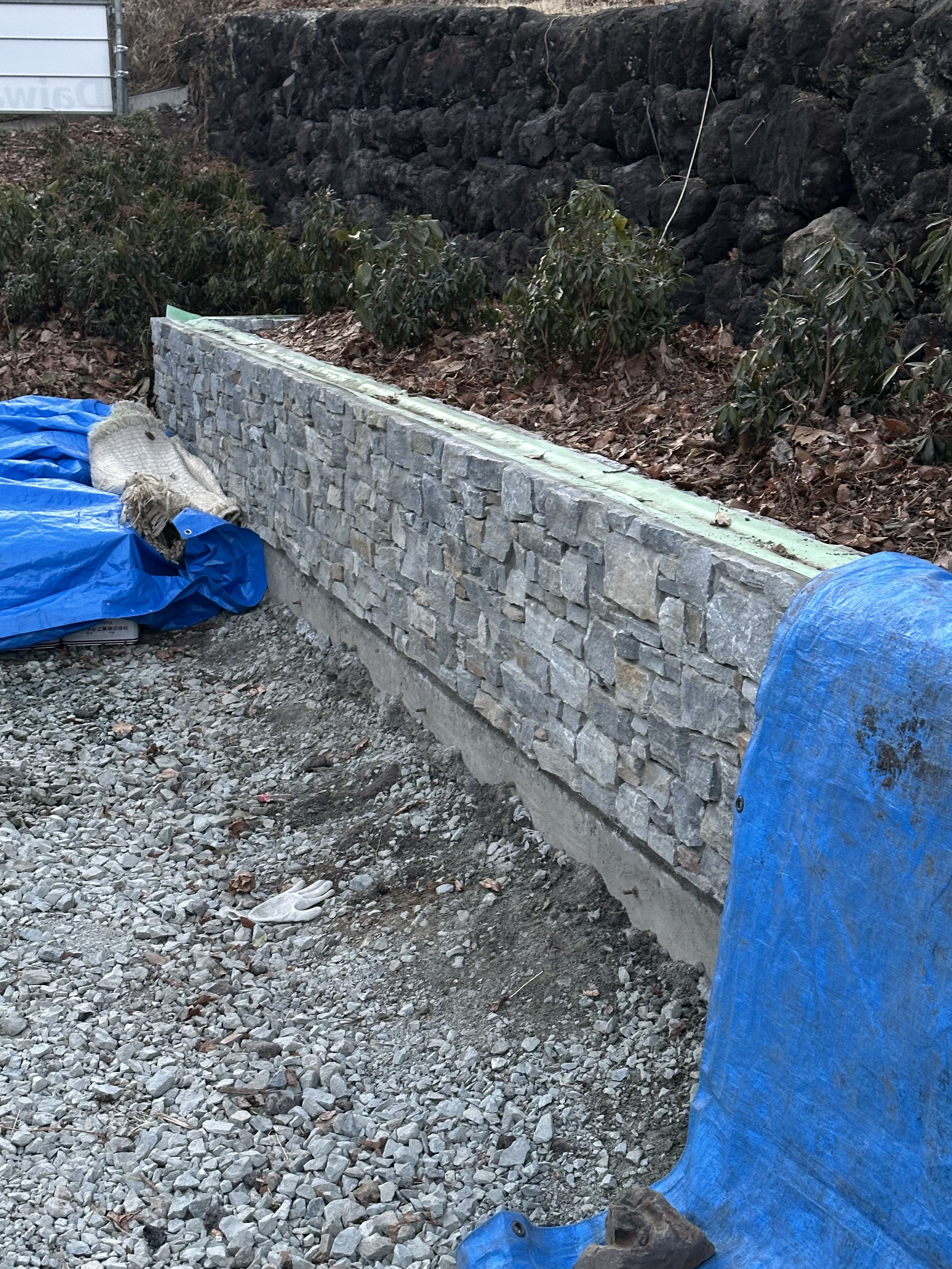 モルタルねり 石張り付け作業補助。 サンダーで石を加工。