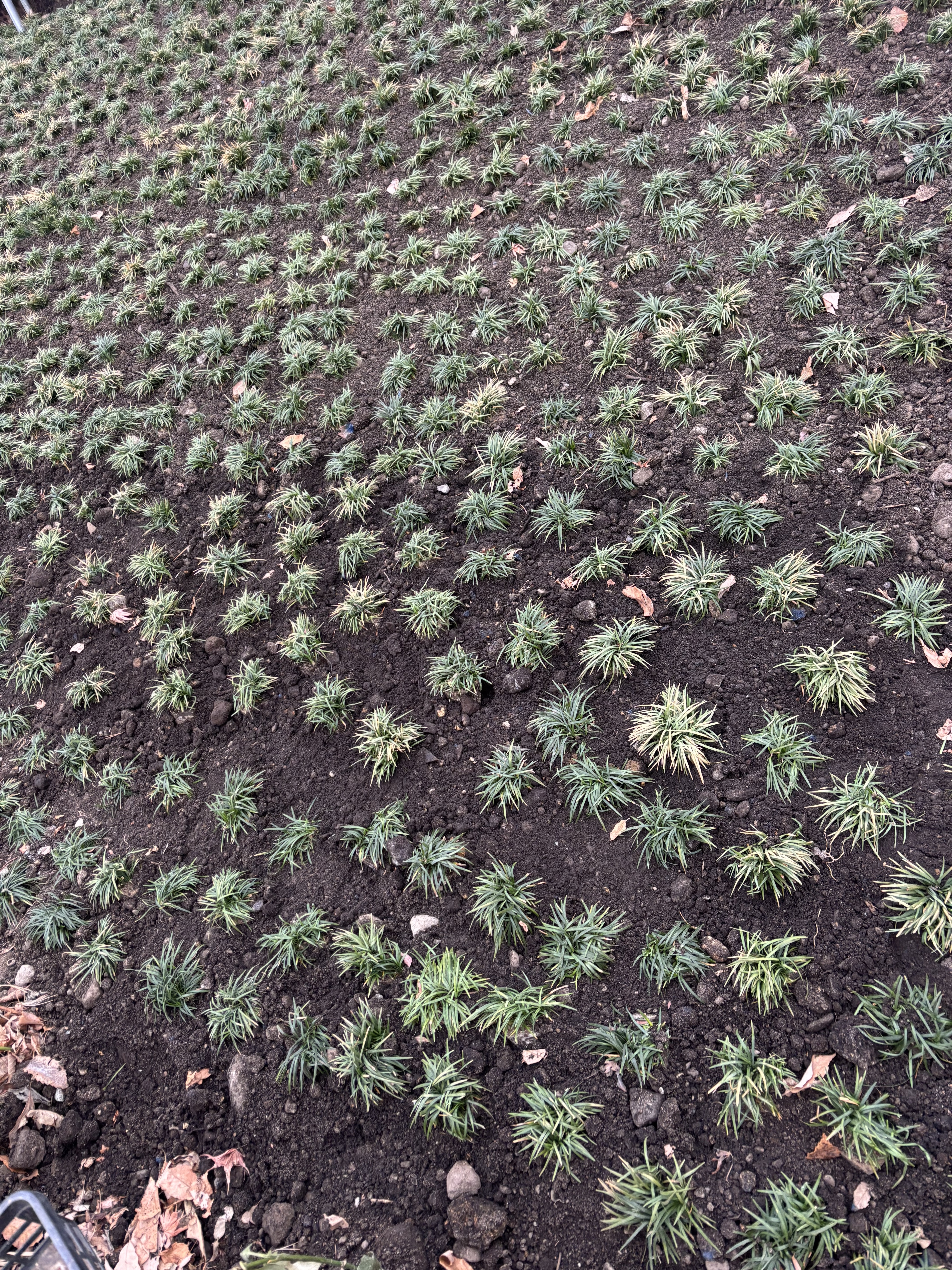 8時〜 DHS様邸 タマリュウ移動 土入れ 整地 タマリュウ植え込み作業を行いました。
