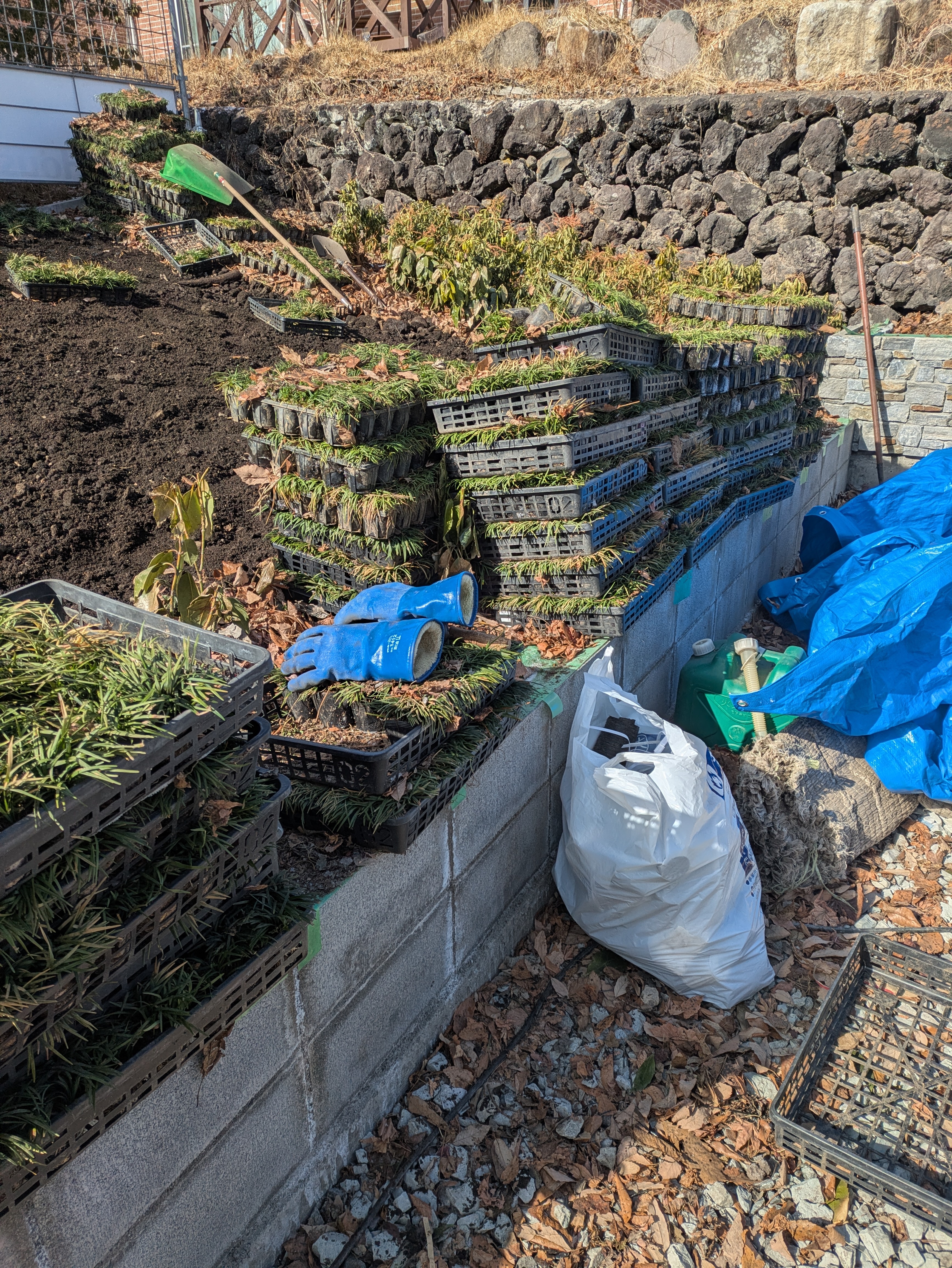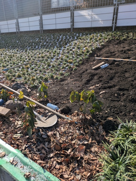タマリュウ植栽場、黒土入れ慣らし