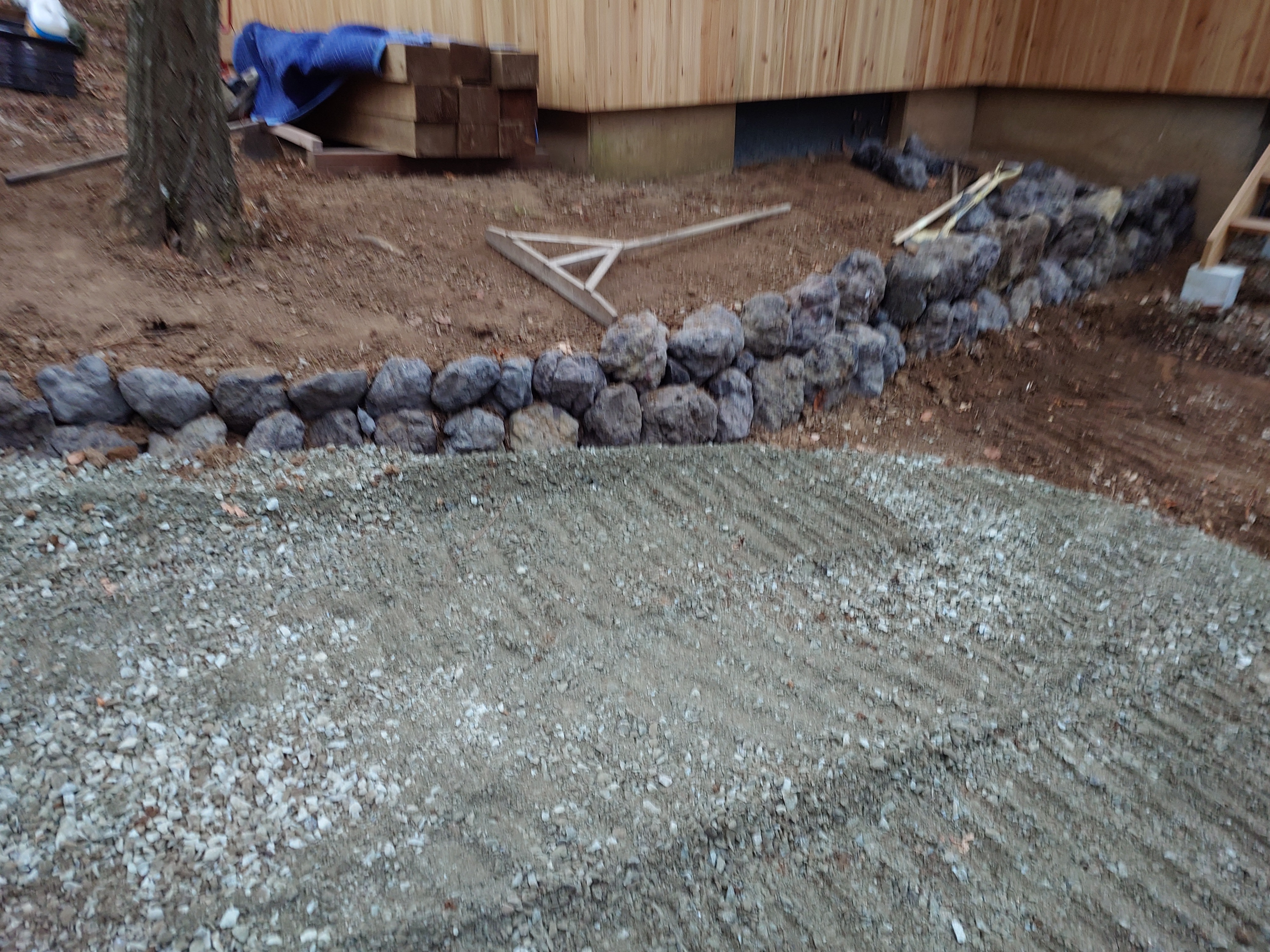 家周り落ち葉掃除。雨落ちならし。お客様の材料片付け。石積掘削、崩れ積み8m高さ0.5m駐車場掘削、残土1台積み置き、軽井沢から砕石C20を1台2立方メートル搬入ならし。片付け。YOS君と明日の作業確認、打合せ。17時30分まで。