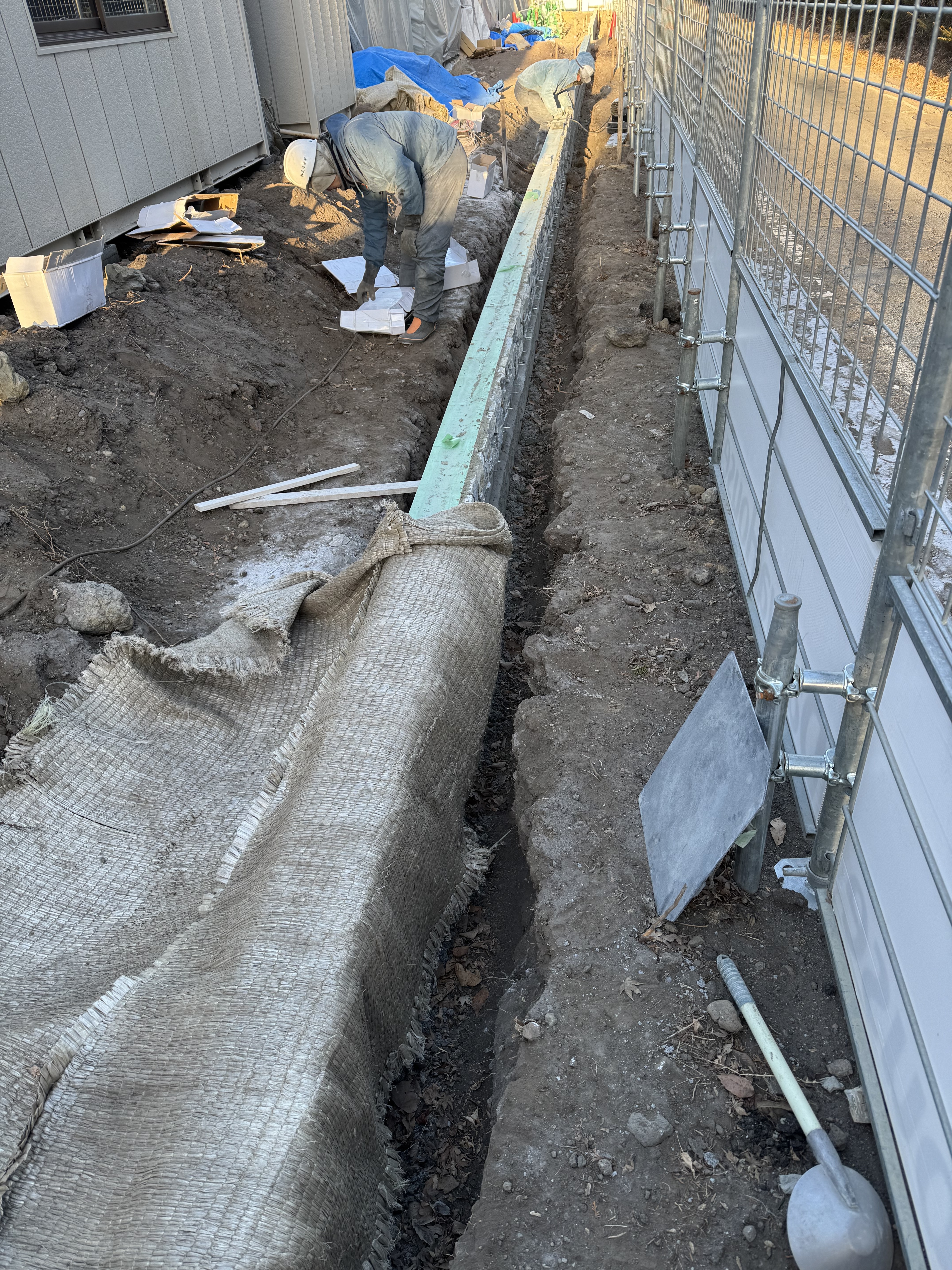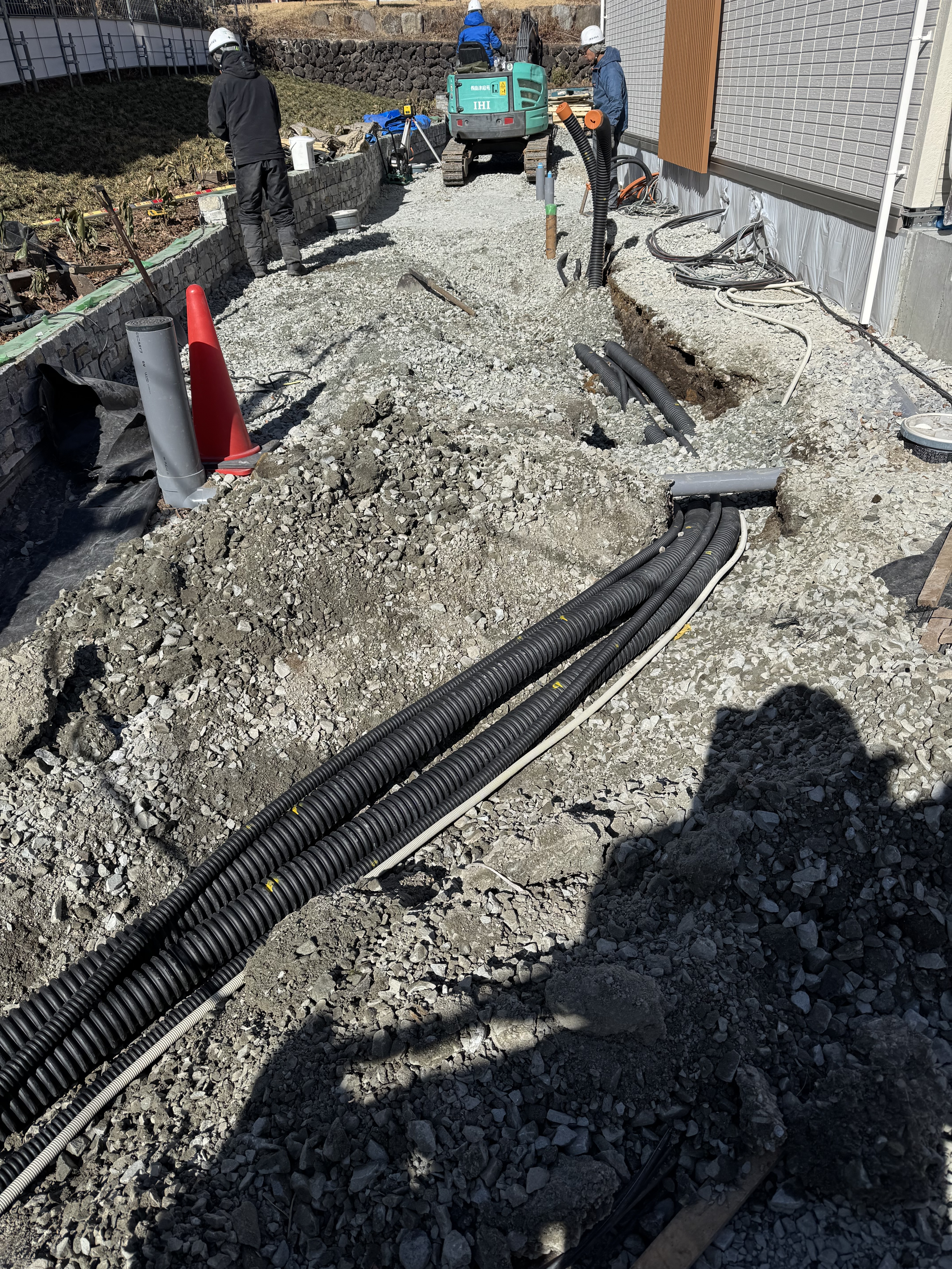 使用機械、ユンボ2台(一台ブレーカー)ダンプ3台、ジェットヒーター3台