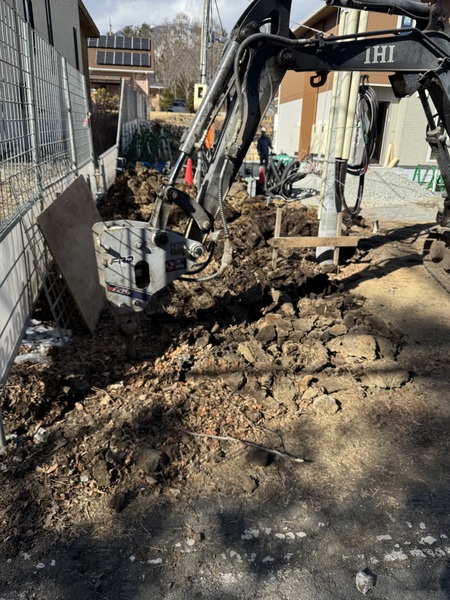 砕石2m3、残土2台、人員6人、使用機械、ユンボ2台、ダンプ3台、ジェットヒーター3台