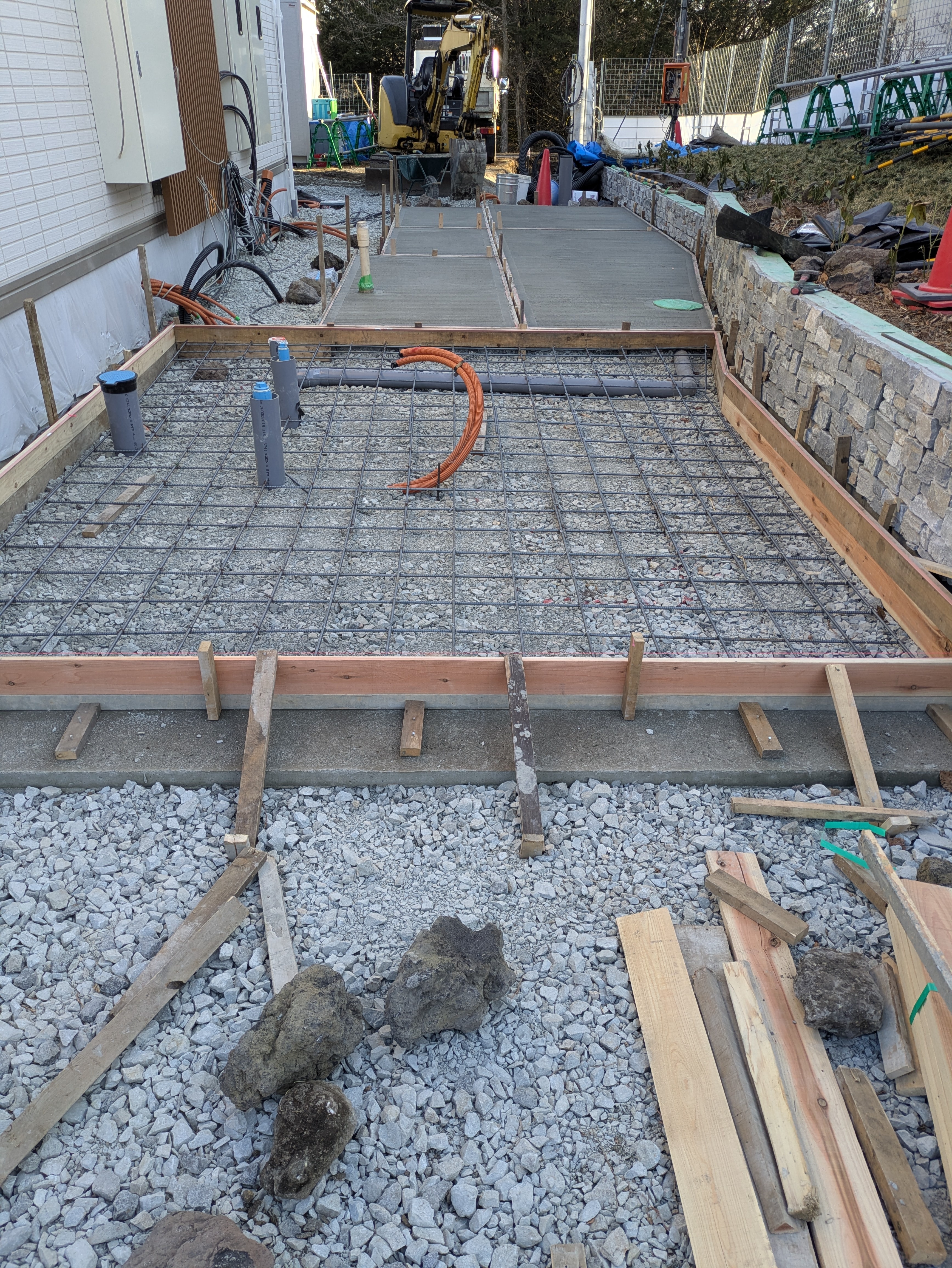 建物西側のブロックベースのコンクリート打設