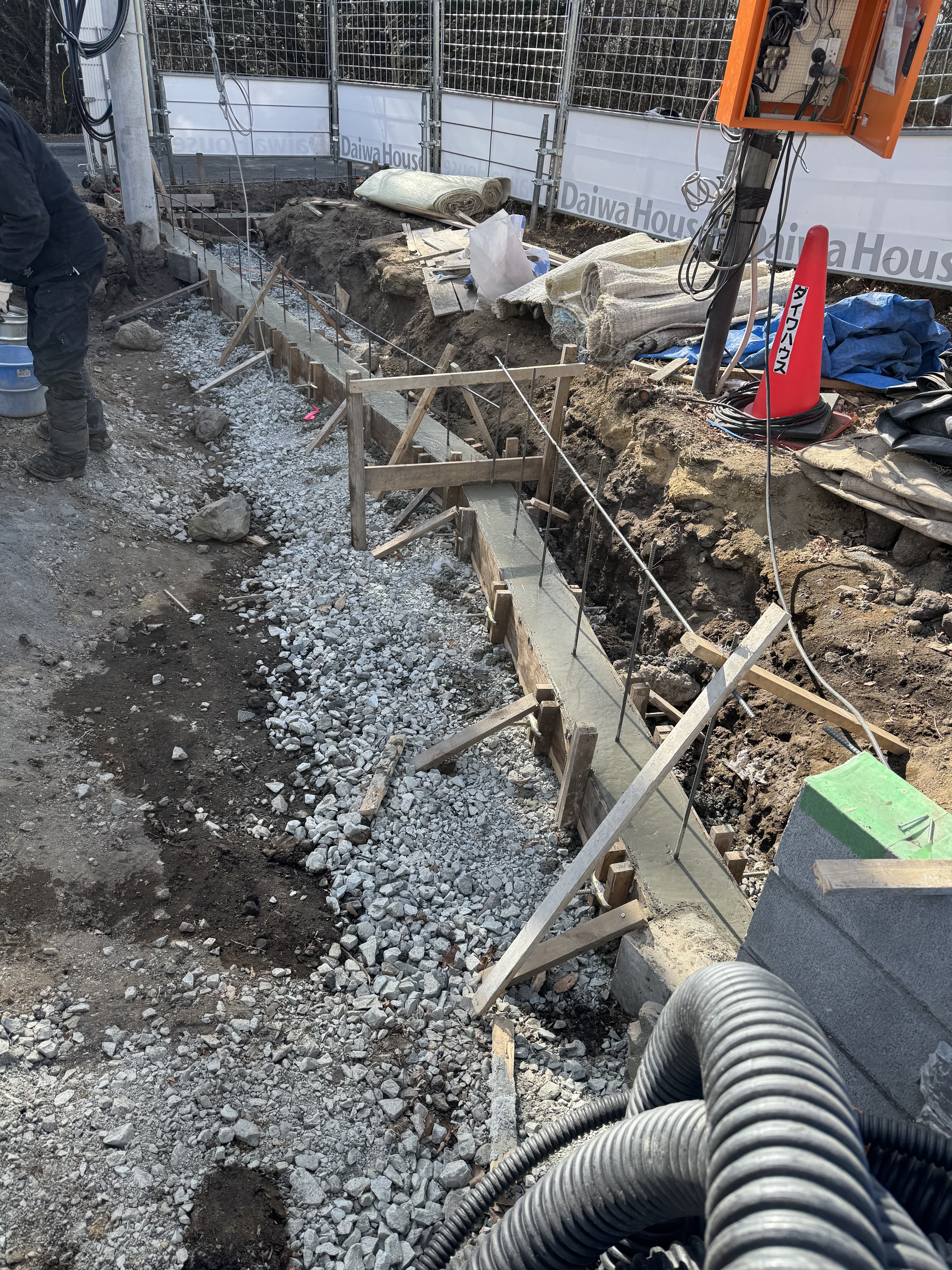 7時10分から17時、DHS様邸、ブロック基礎の生コン打設(0.5m3)
