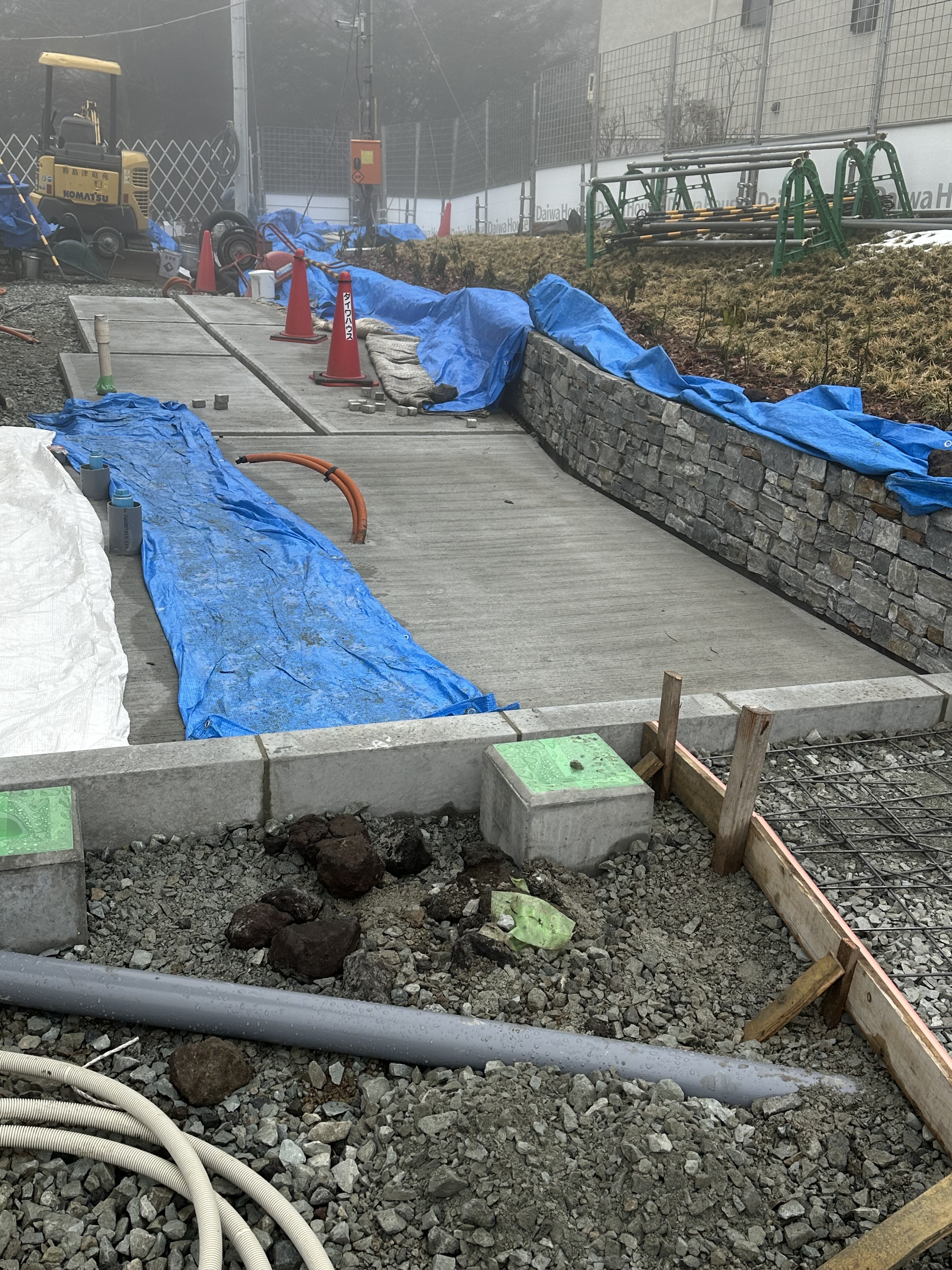 7時20分から17時00分 ブルーシートはぎ 駐輪場 倉庫の型枠外し 駐車場の型枠組み シート養生 片付け。