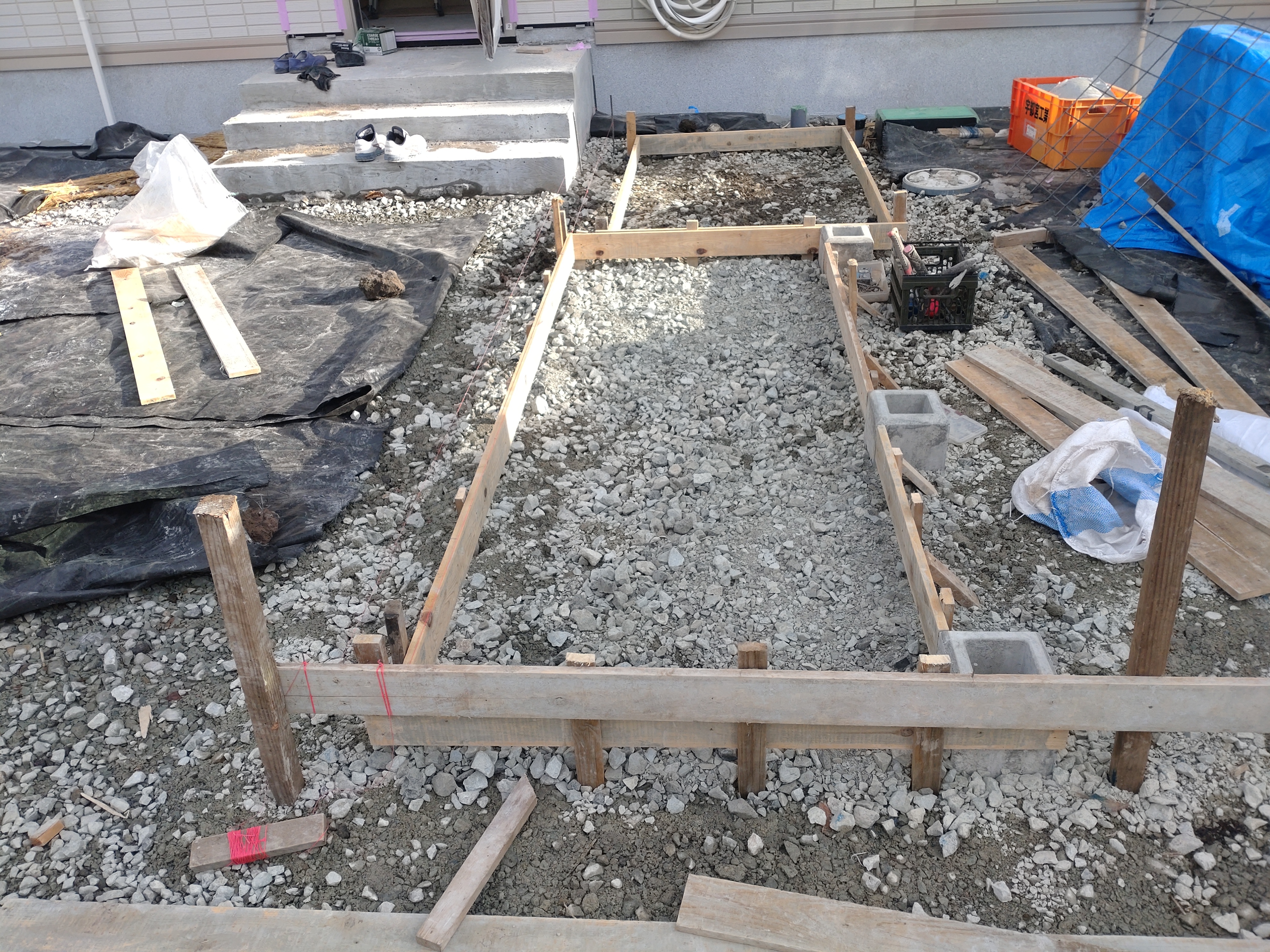 北側西駐輪場、アプローチの削り作業補助(飛散防止のためのコンパネおさえ)