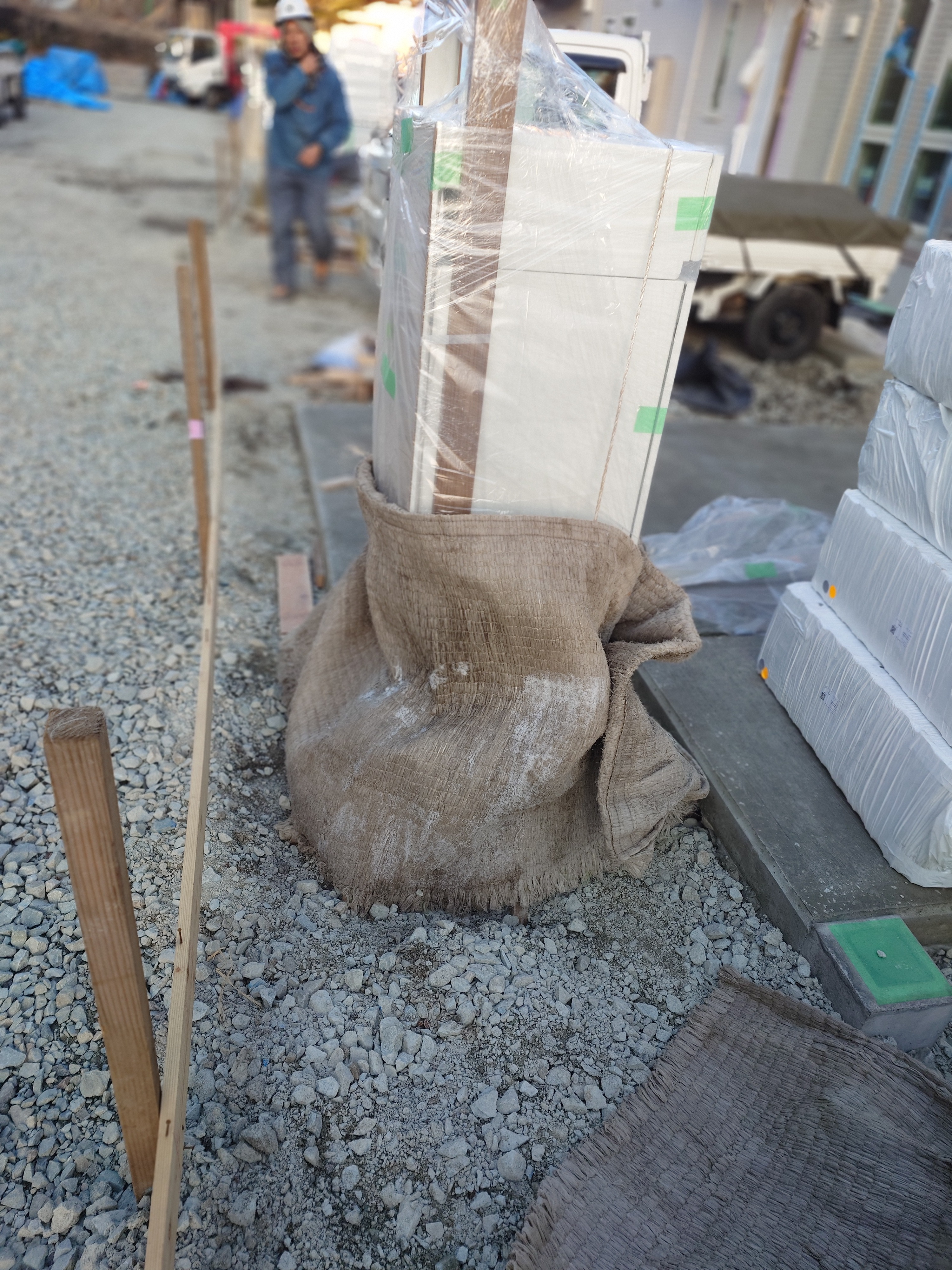 朝7時30分、材料積込。メールチェック、材料確認。8時40分、コンビニ出経費をおろして、DHS様邸・9時から門柱型枠つくり、8基、型枠にセット、高さ、通りだし、17時まで。