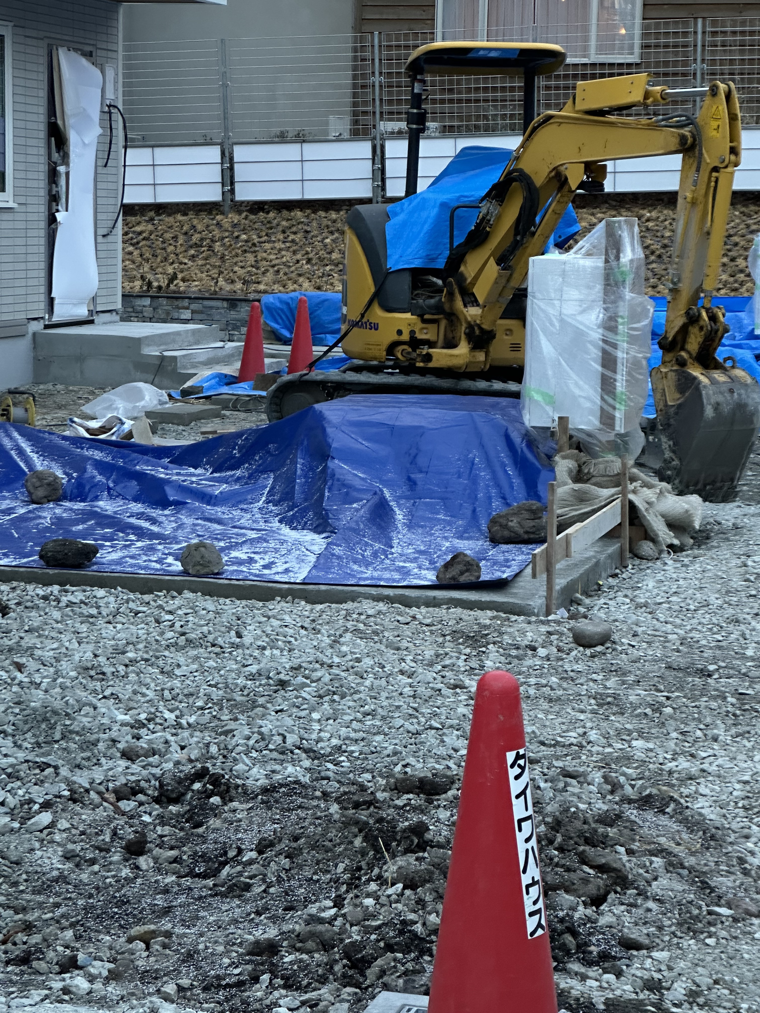 朝昨日購入した セメントをおろし シート養生はぎ