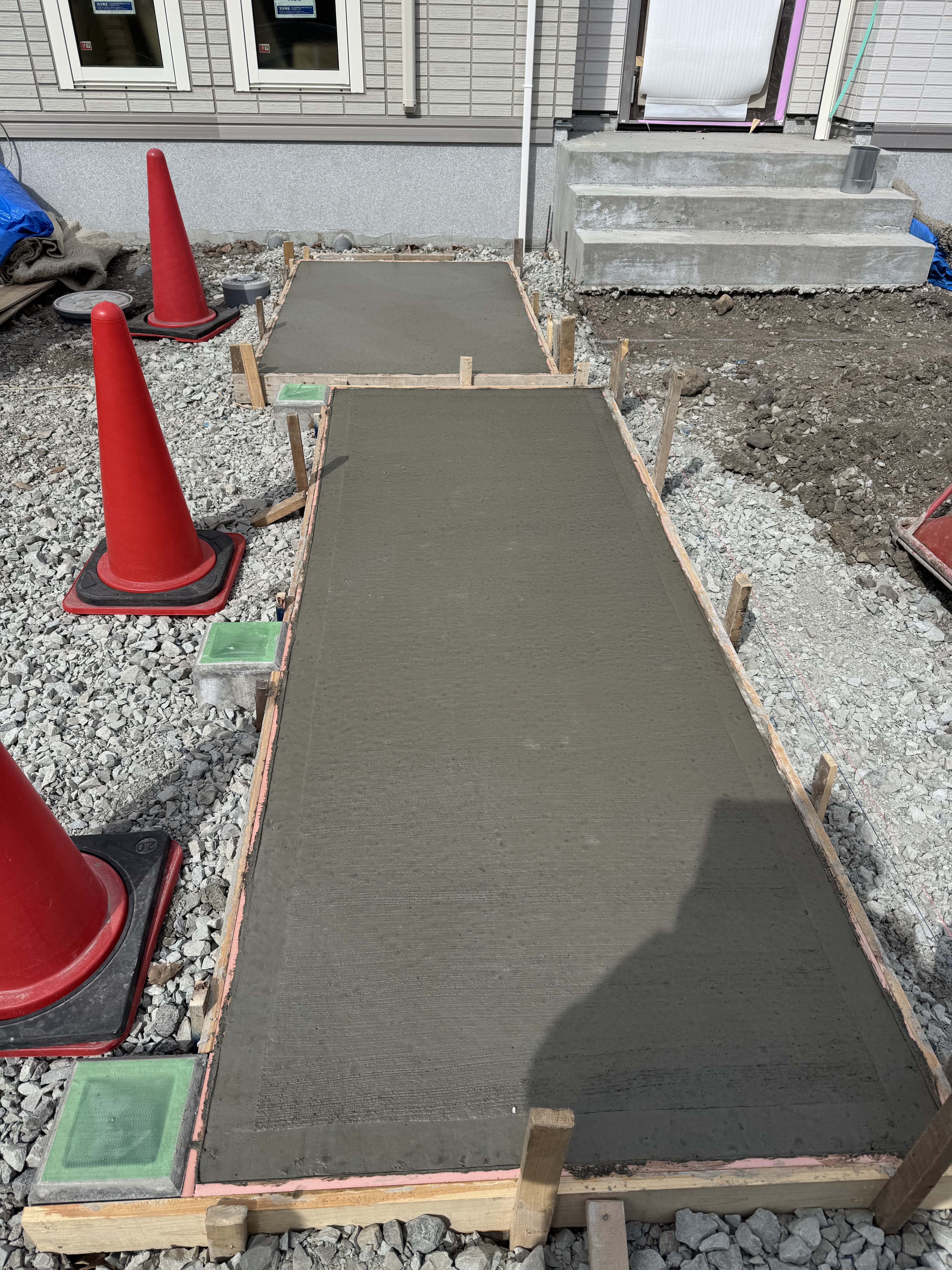 DHS様邸、RYO、生コン打設、擬木布設作業
