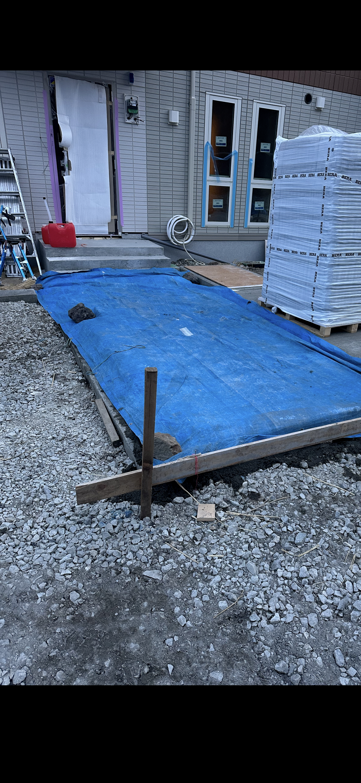 15時頃から社長の砕石敷き 補助。ローラーかけ。