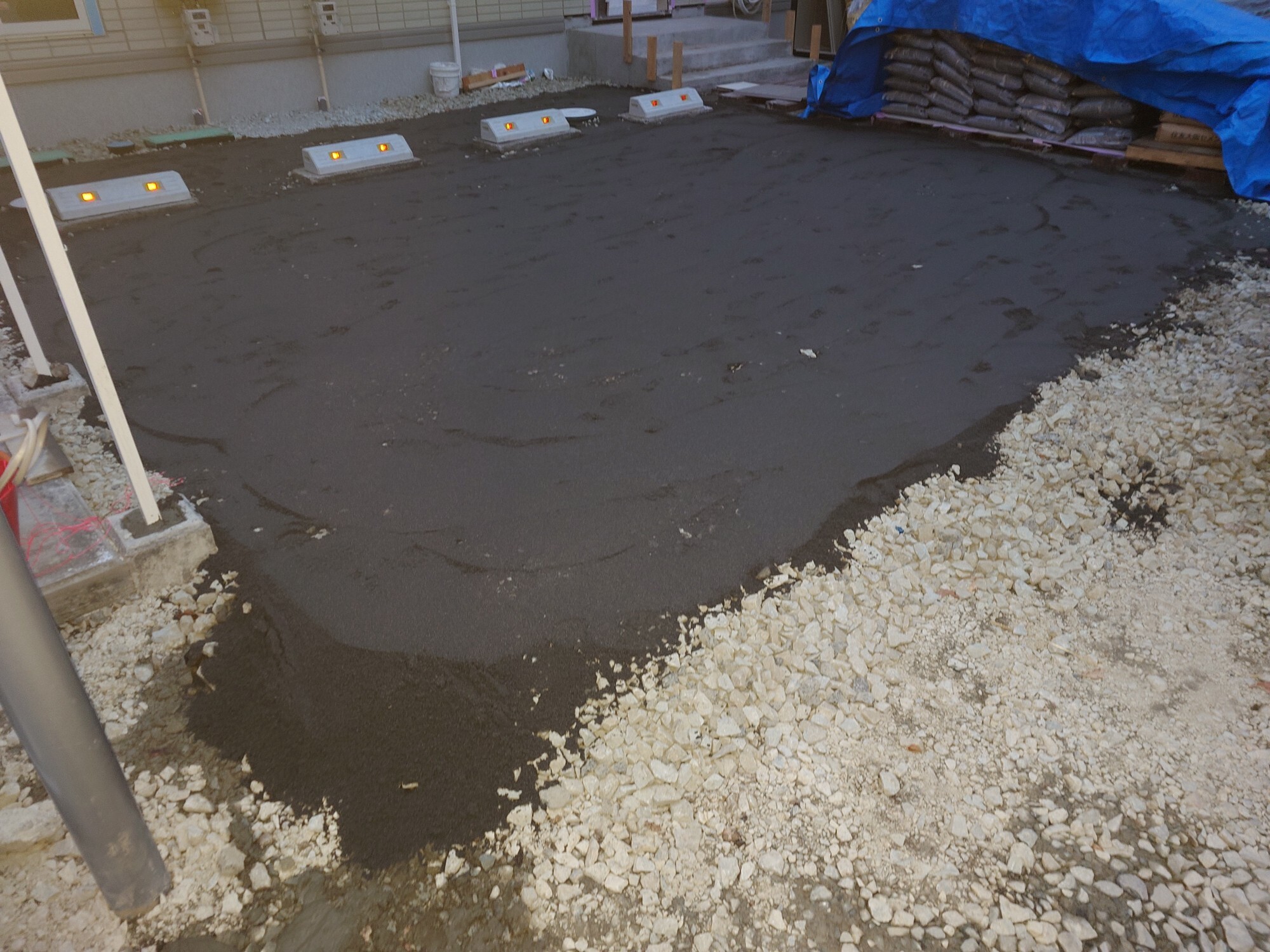 13時30分、DHS様邸、到着、荷下ろし、駐車場工事