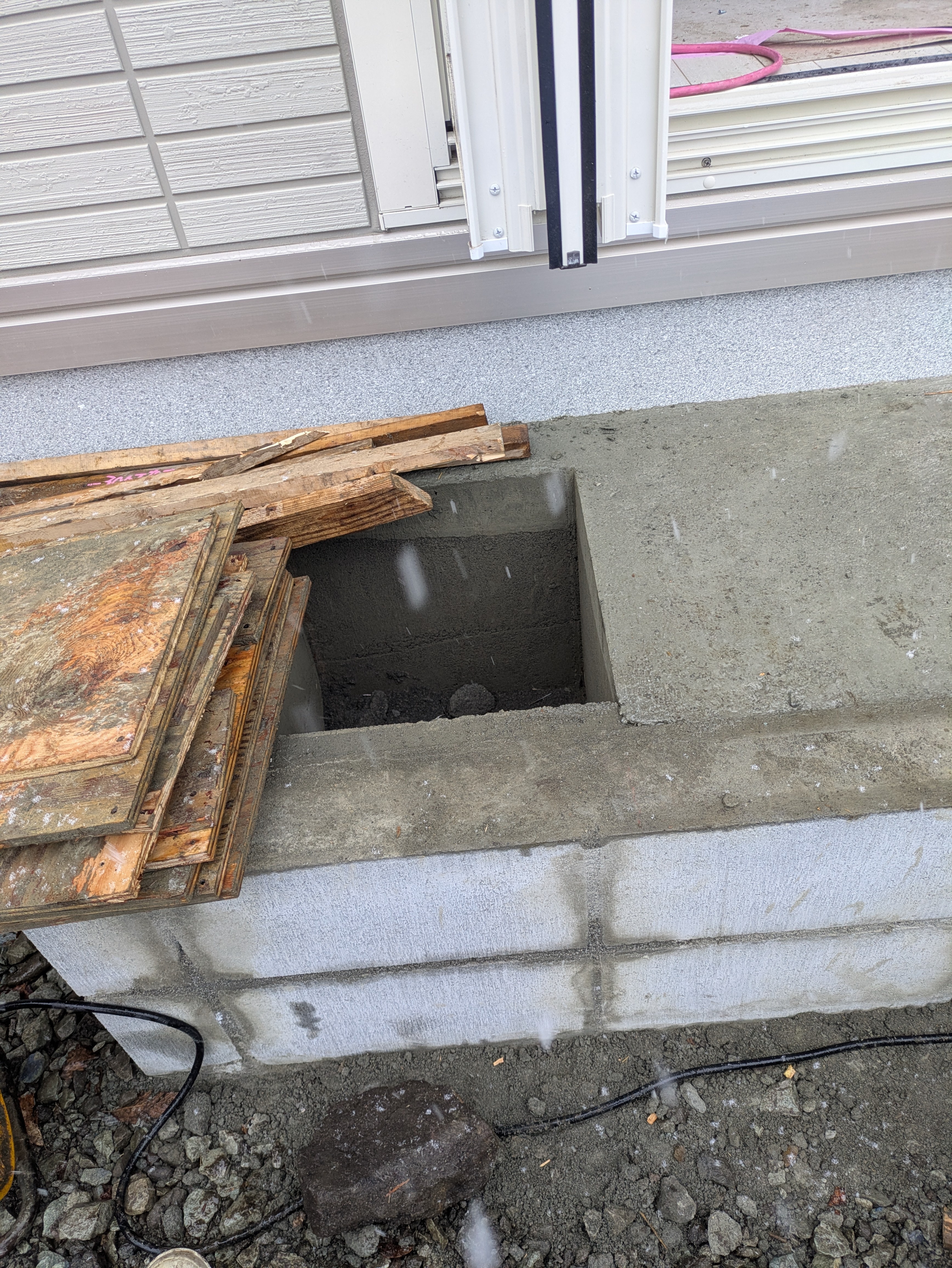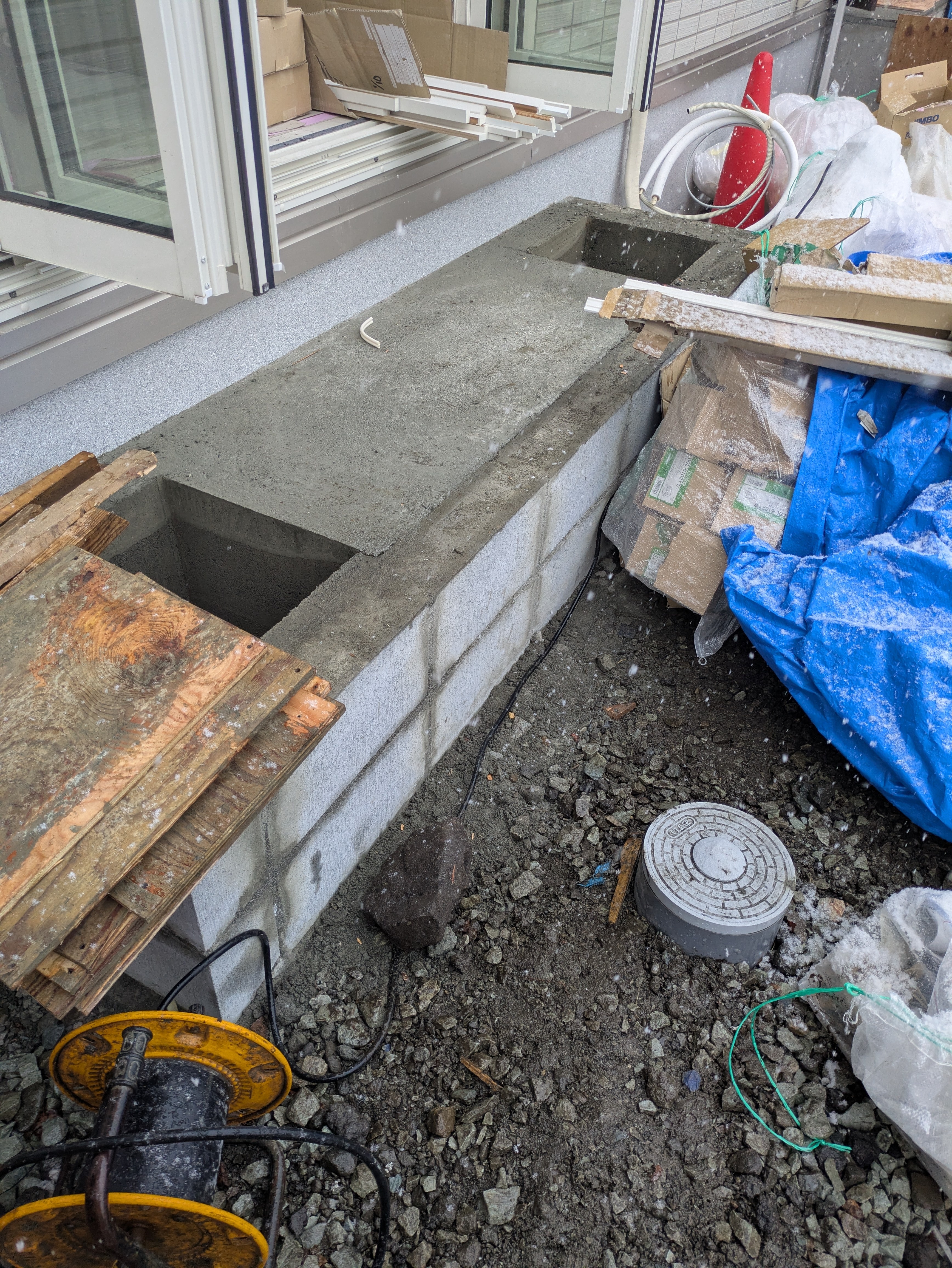 駐車場車止めの型枠設置 玄関前アプローチのベース型枠組み