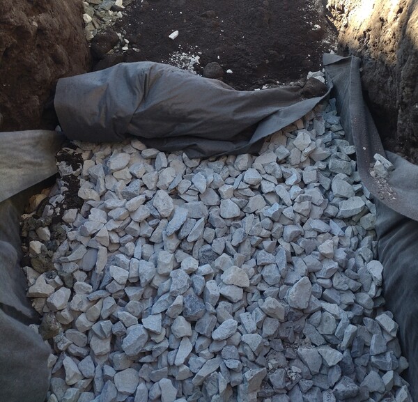 暗渠工床掘り補助、クッション砂入れ、透水シート敷き