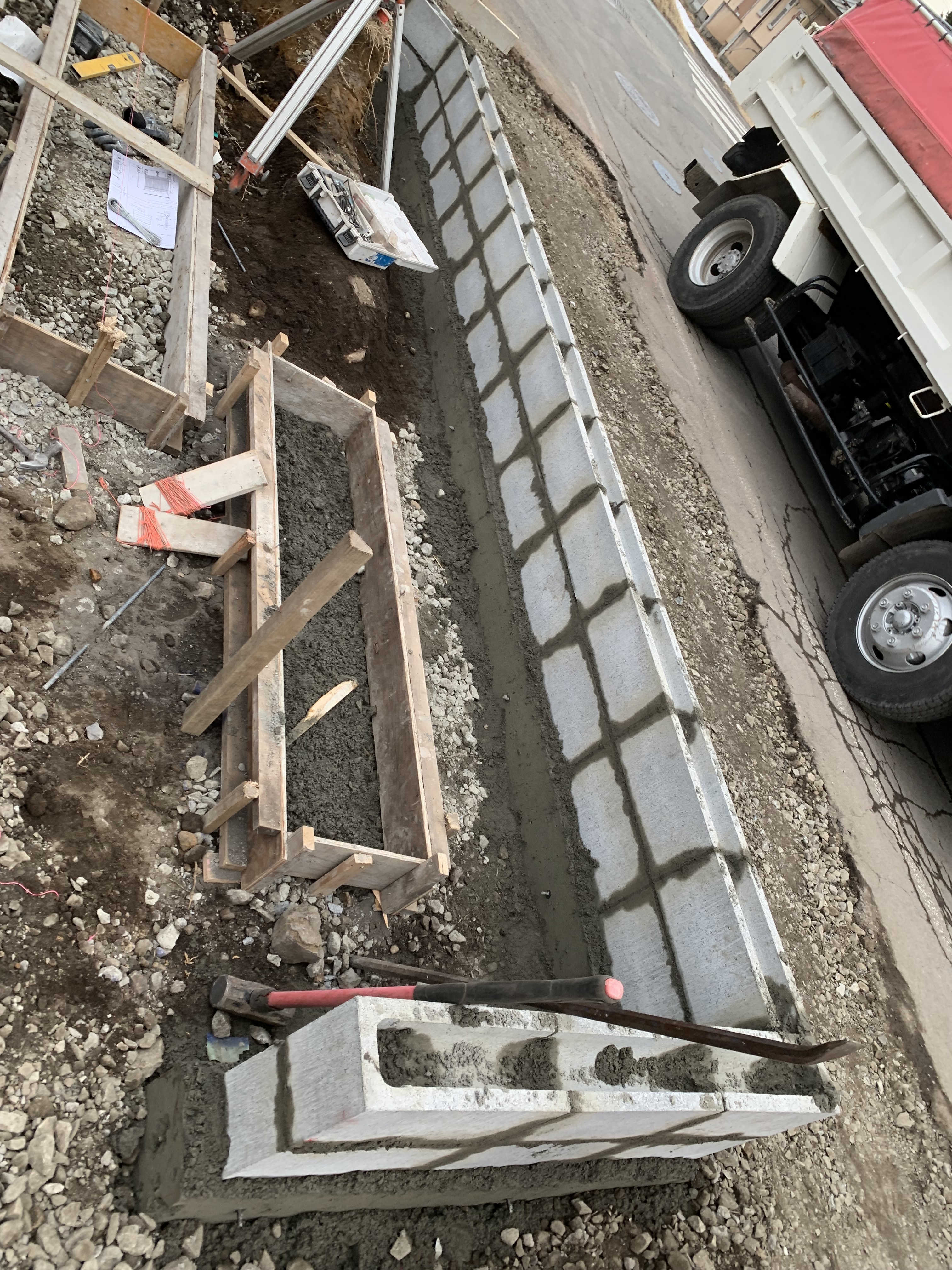 ブロック積み基礎型枠バラシ、丁張り出し、ブロック積み(3箇所)、
