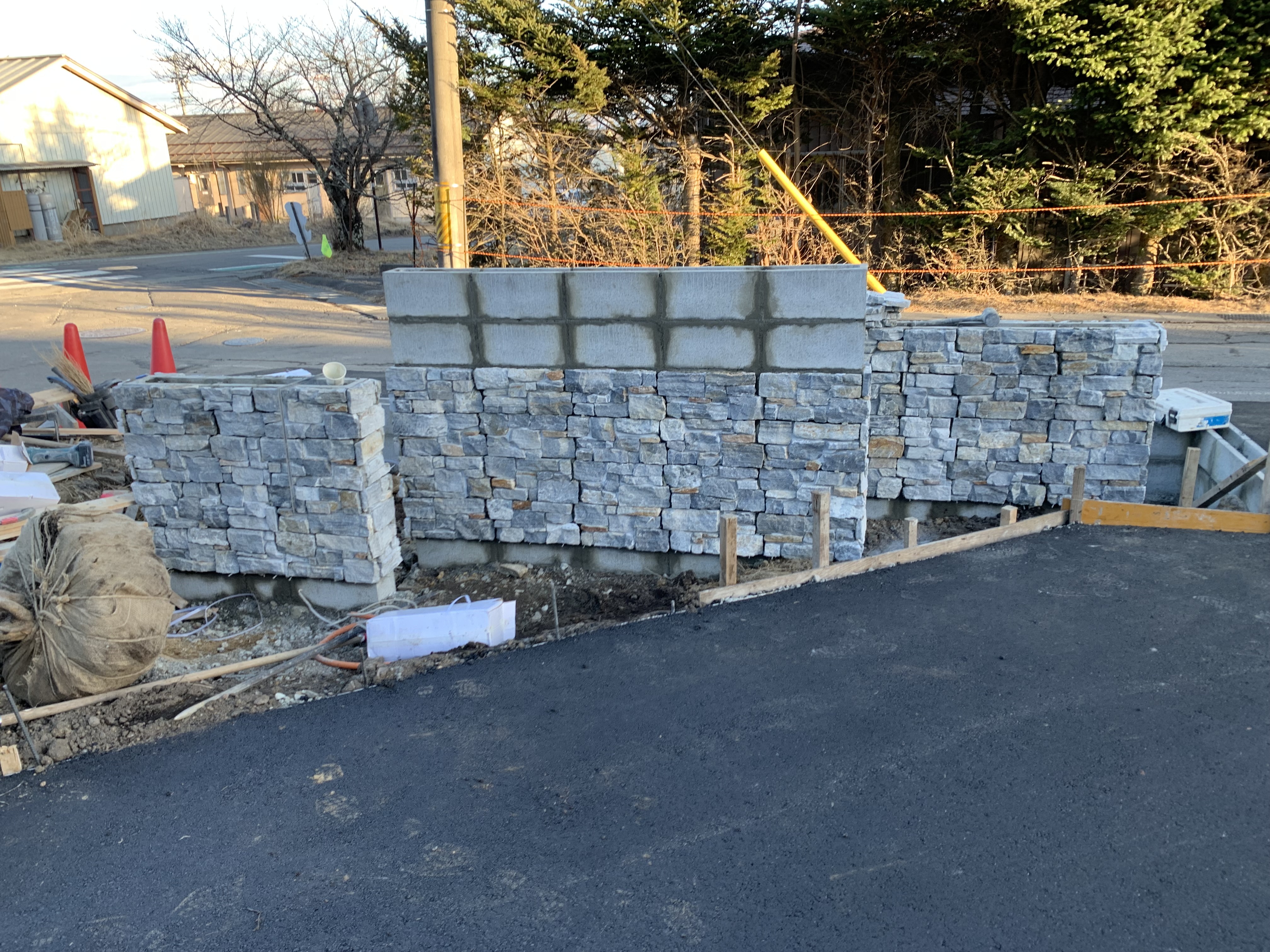 シートはぎ、石貼り(2箇所完了)、養生