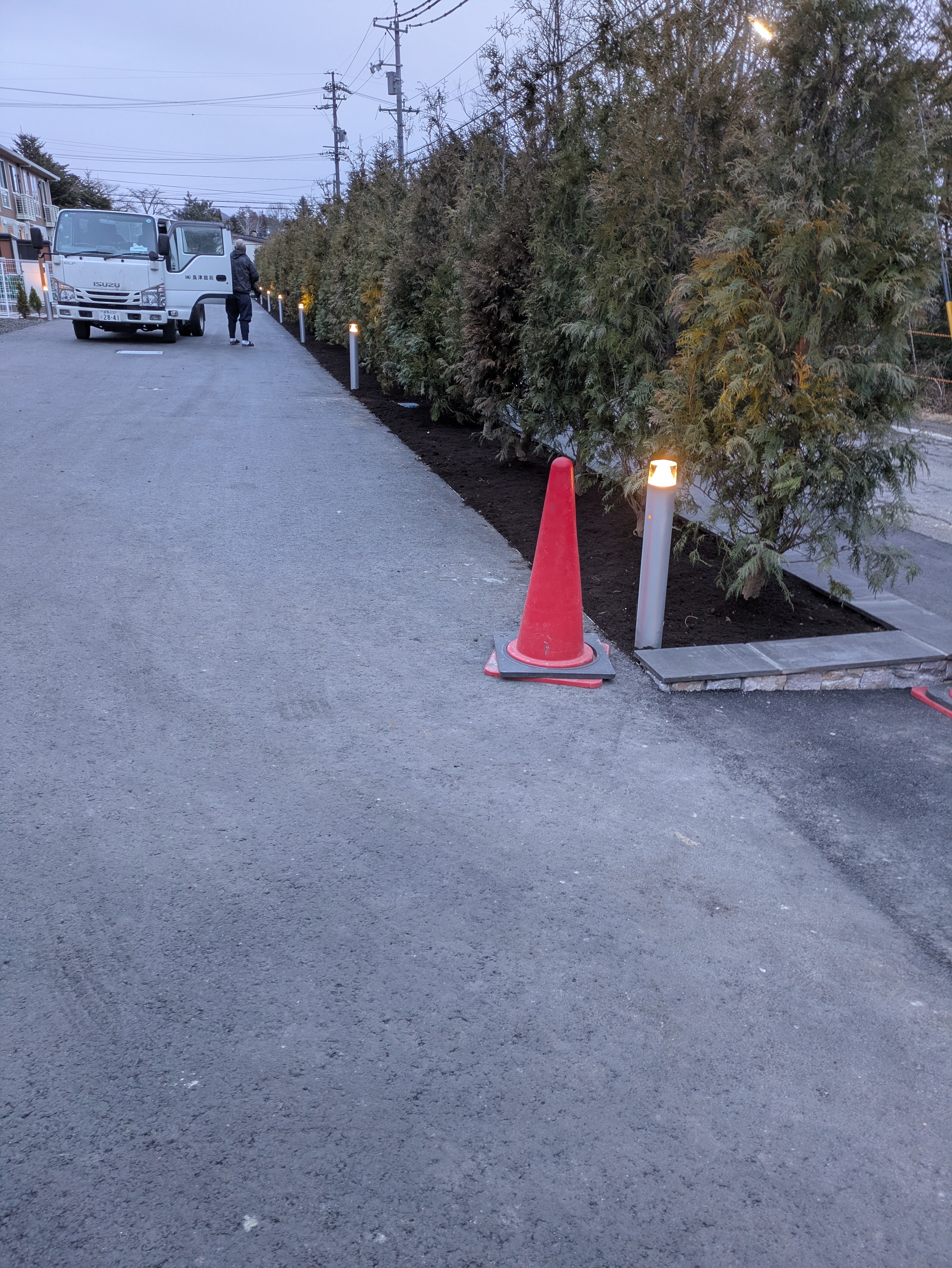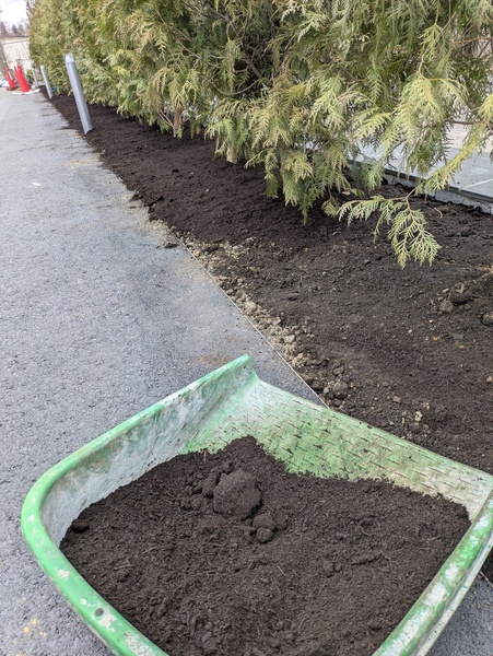現場内黒土上のバークチップ敷き詰め
