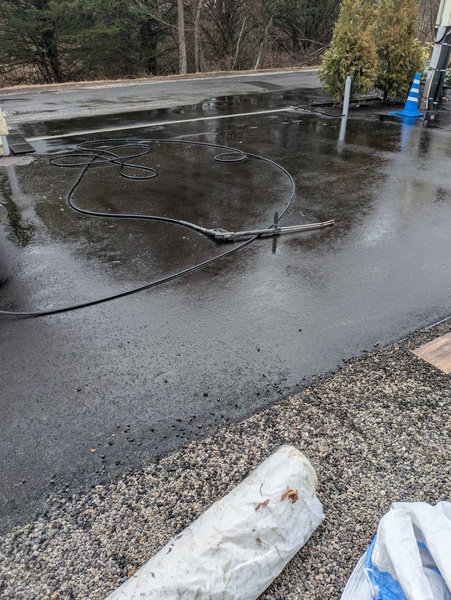 現場内全部のアスファルト舗装を高圧洗浄機で洗浄