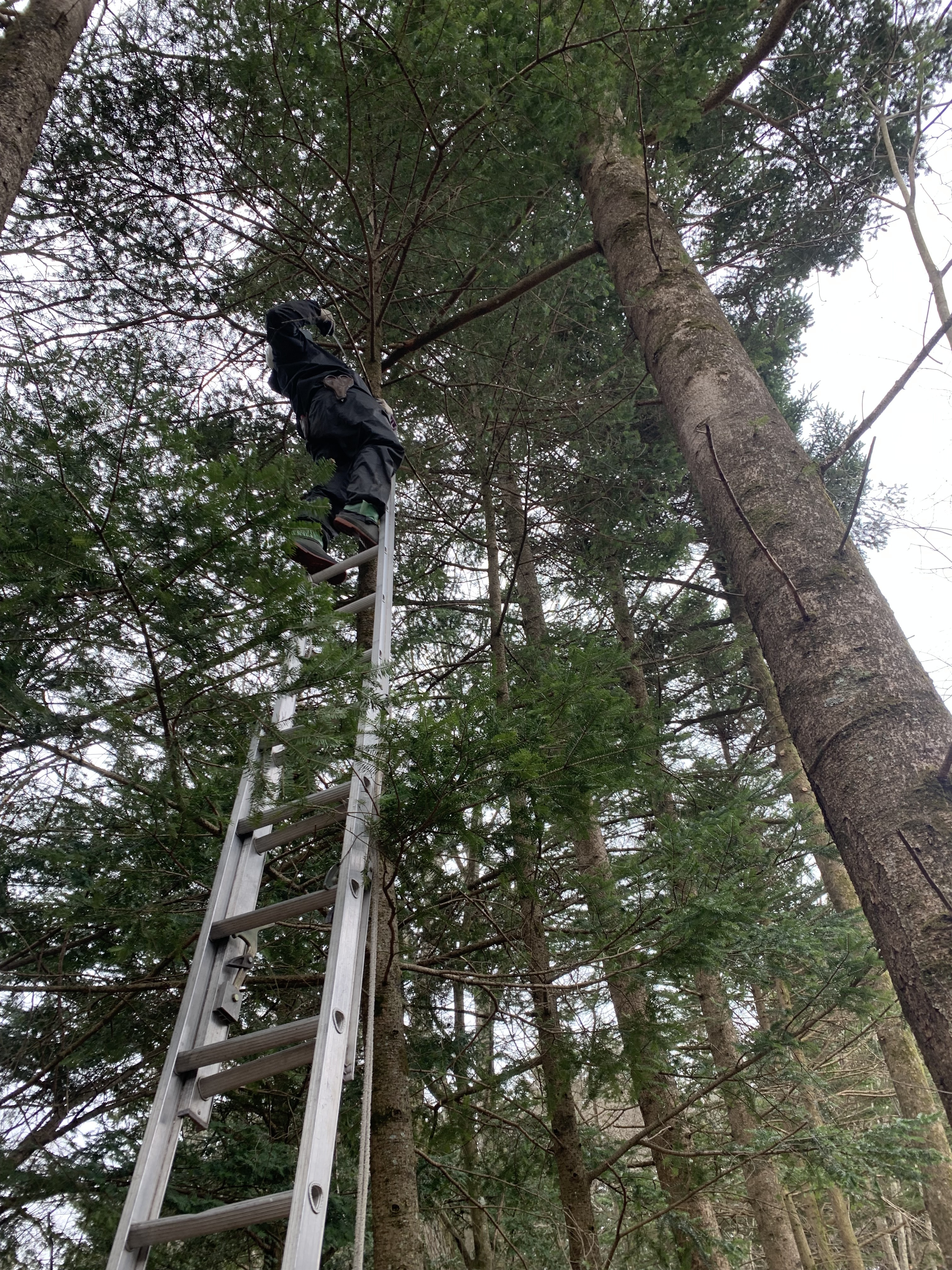 伐採(登り切り、枝払い3本、伐採1本)、隣地へ飛び出した枝の伐採、掃除
