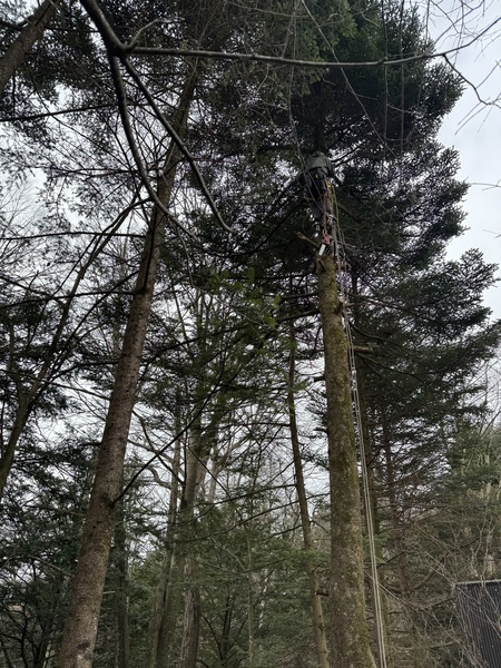 7時40分から16時40分、CRR様邸、モミ大6本、中3本登って枝払い、