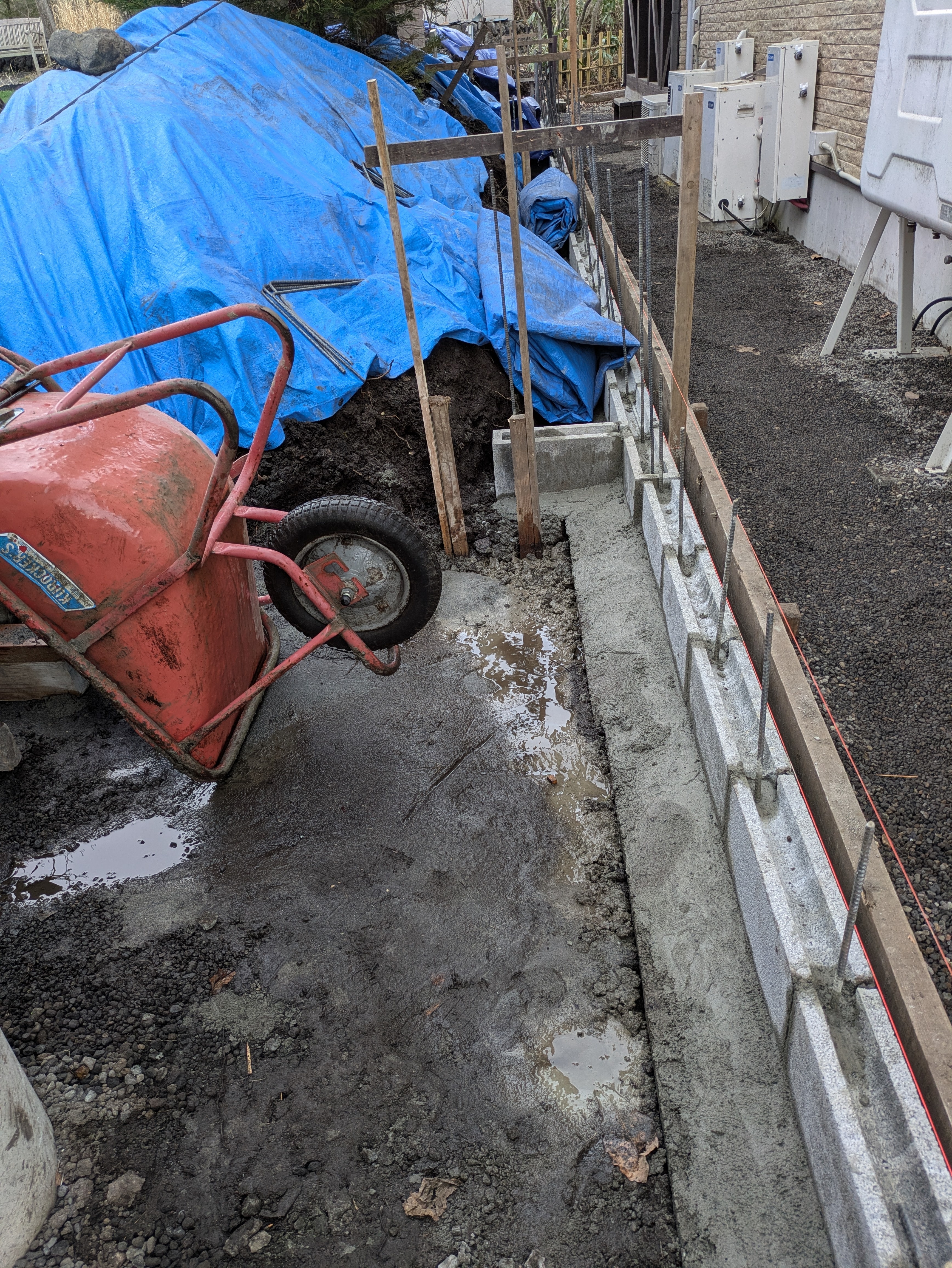 ブロック配り ブロック積みのモルタル打設