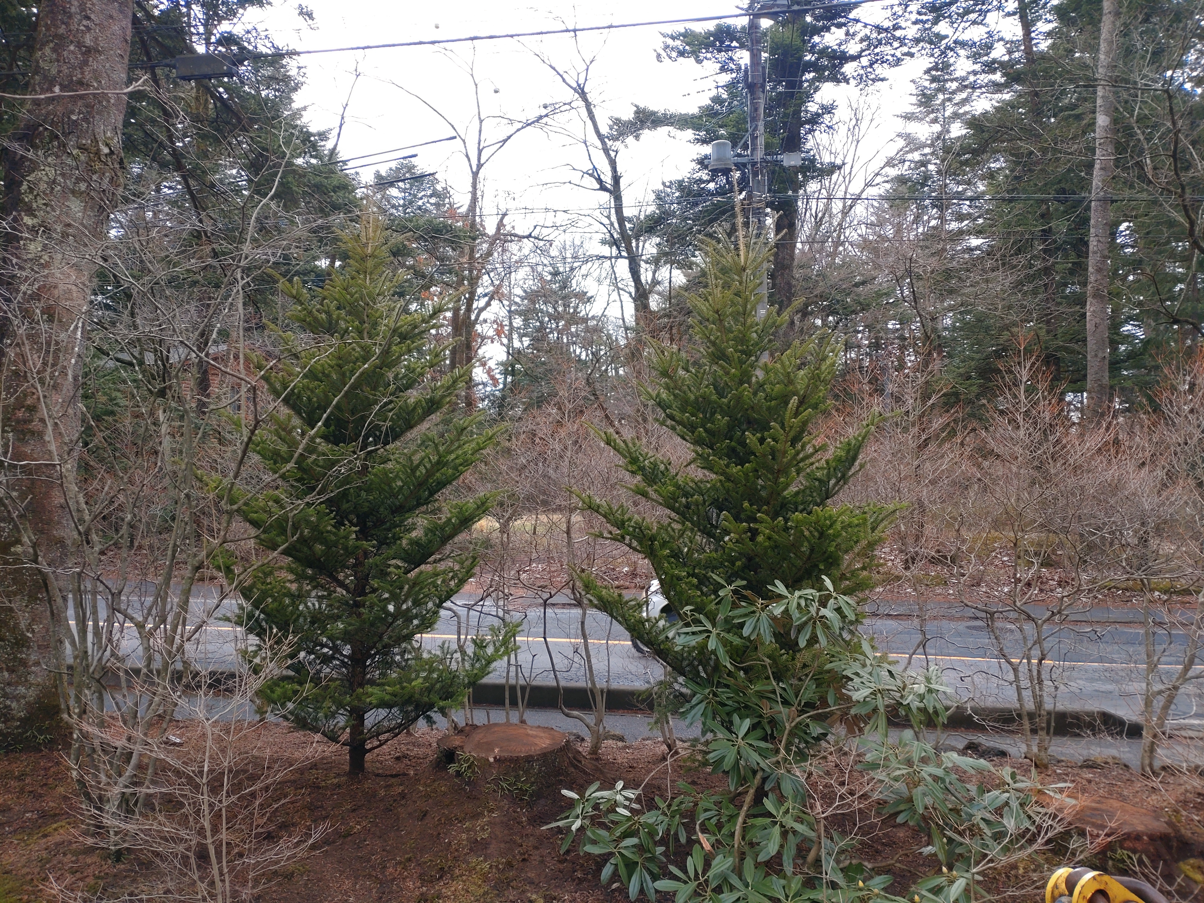 モミ4本植栽、ドウダン1本移植、水やり、整地