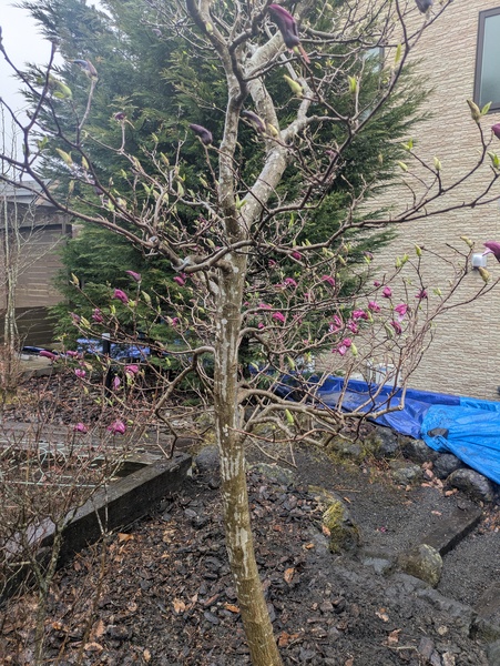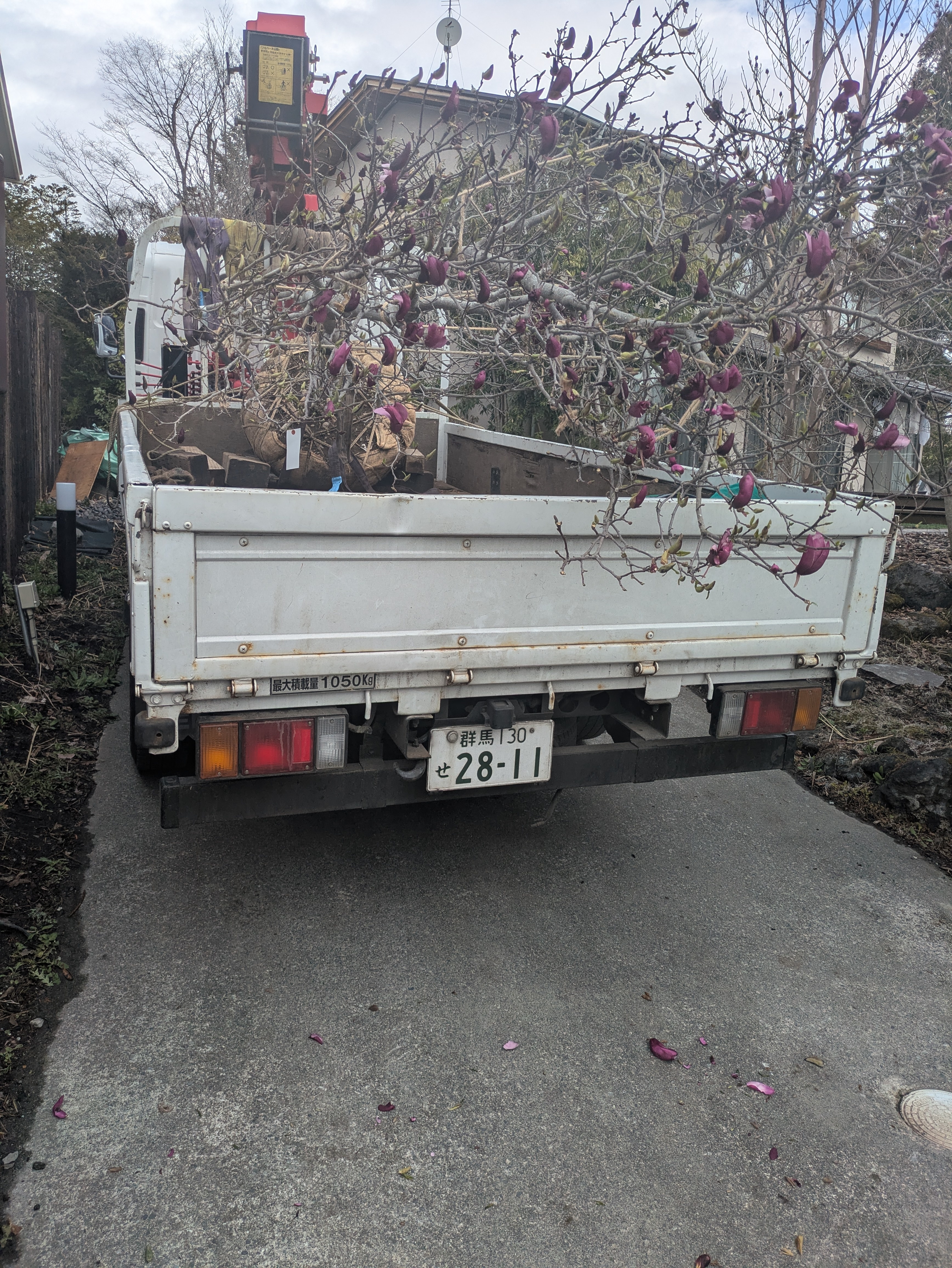 上田の植木屋へシモクレン1本を積みに行き