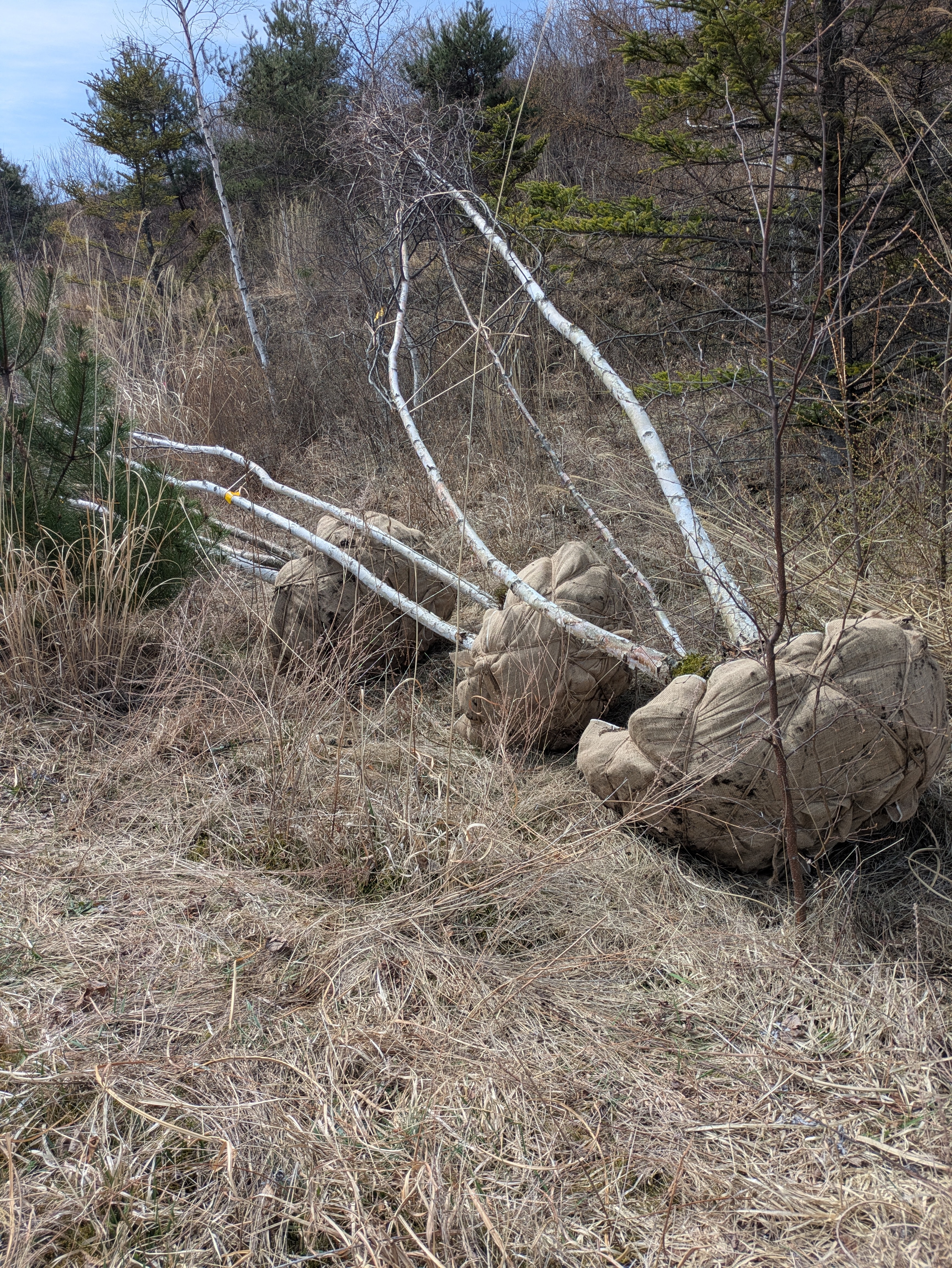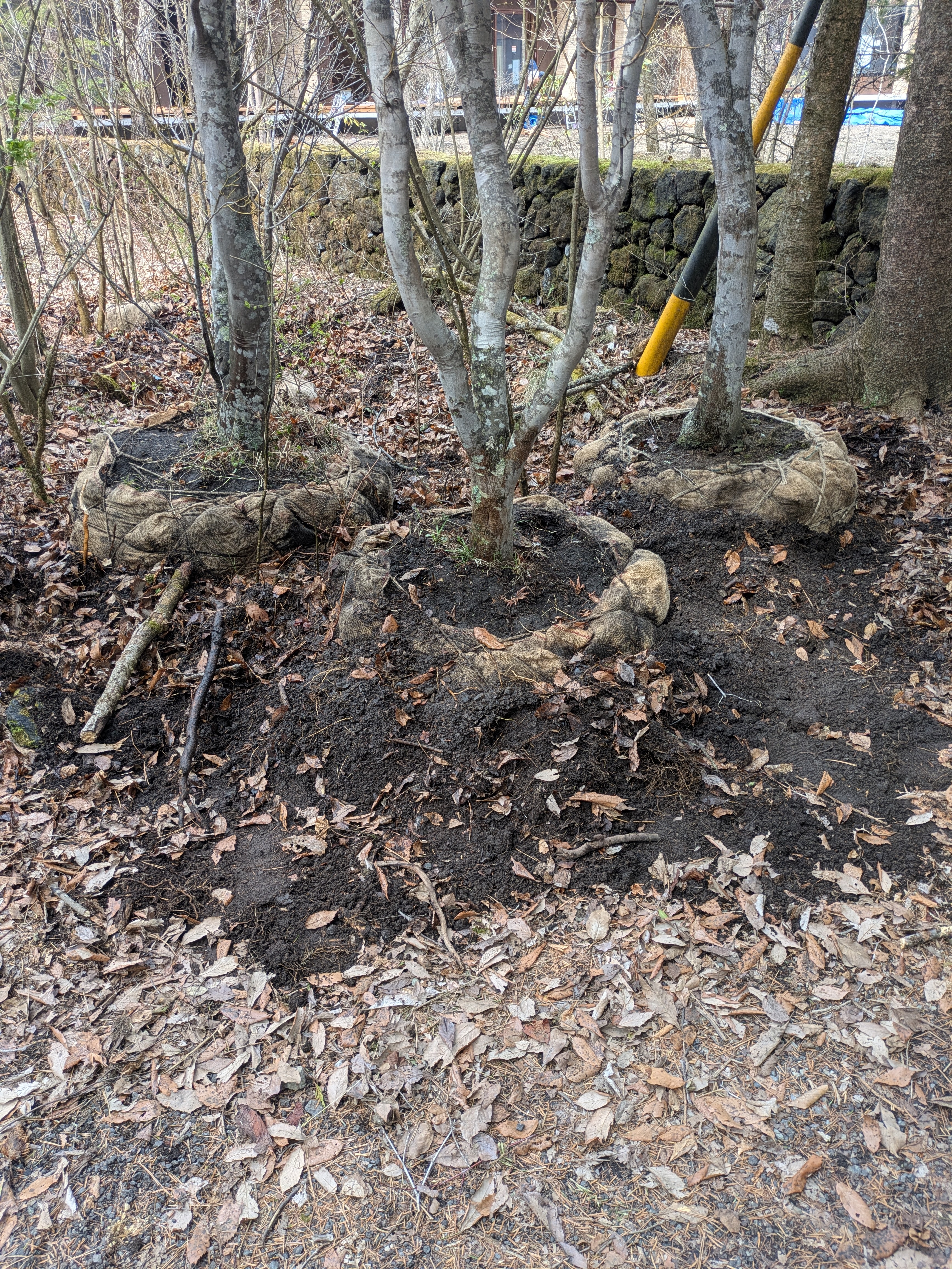 もみじ アナベル ユキヤナギ レンギョ等、植木の仮植え 整地